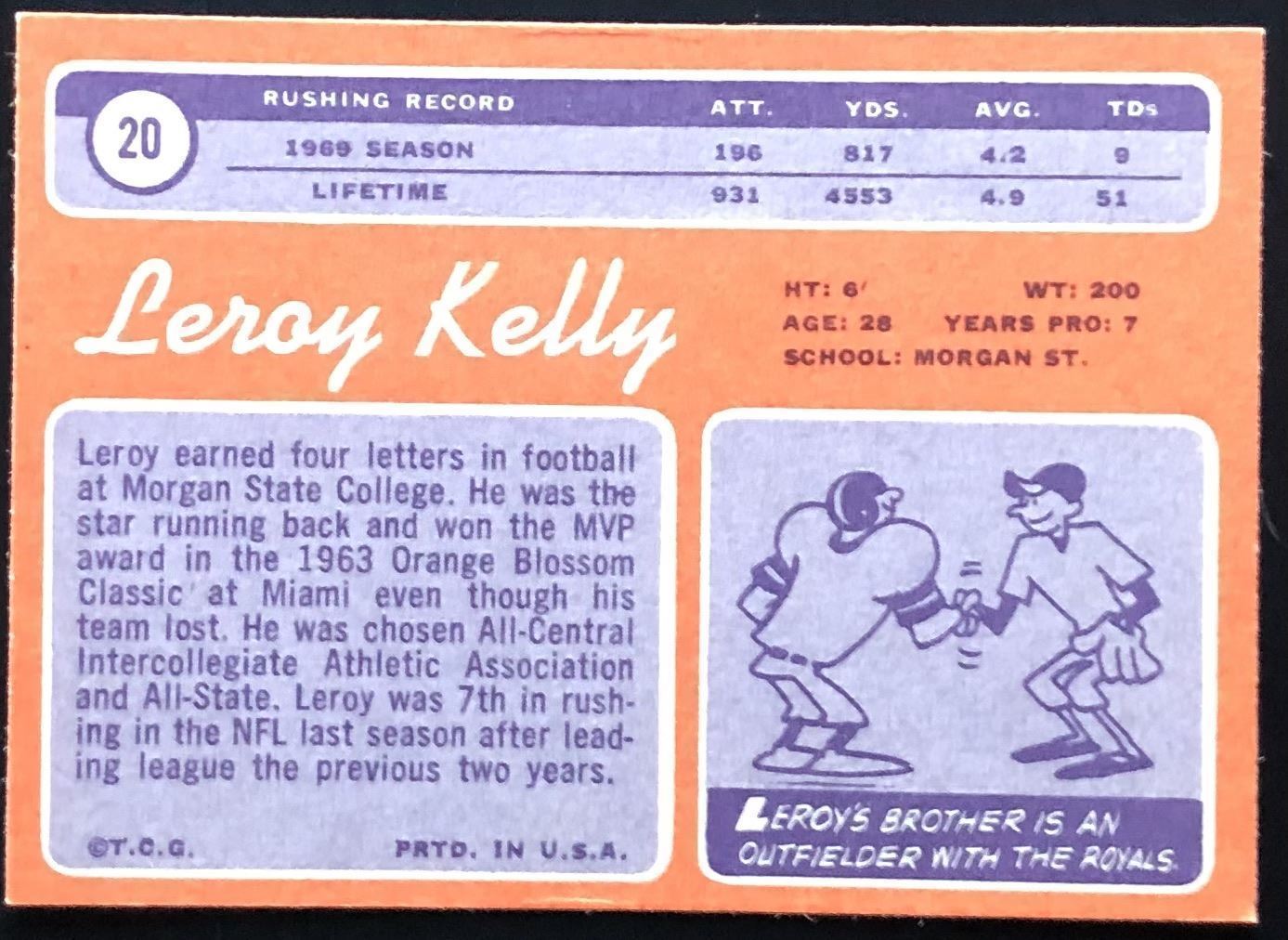 Lot 612 1970 TOPPS LEROY KELLY (HOF)