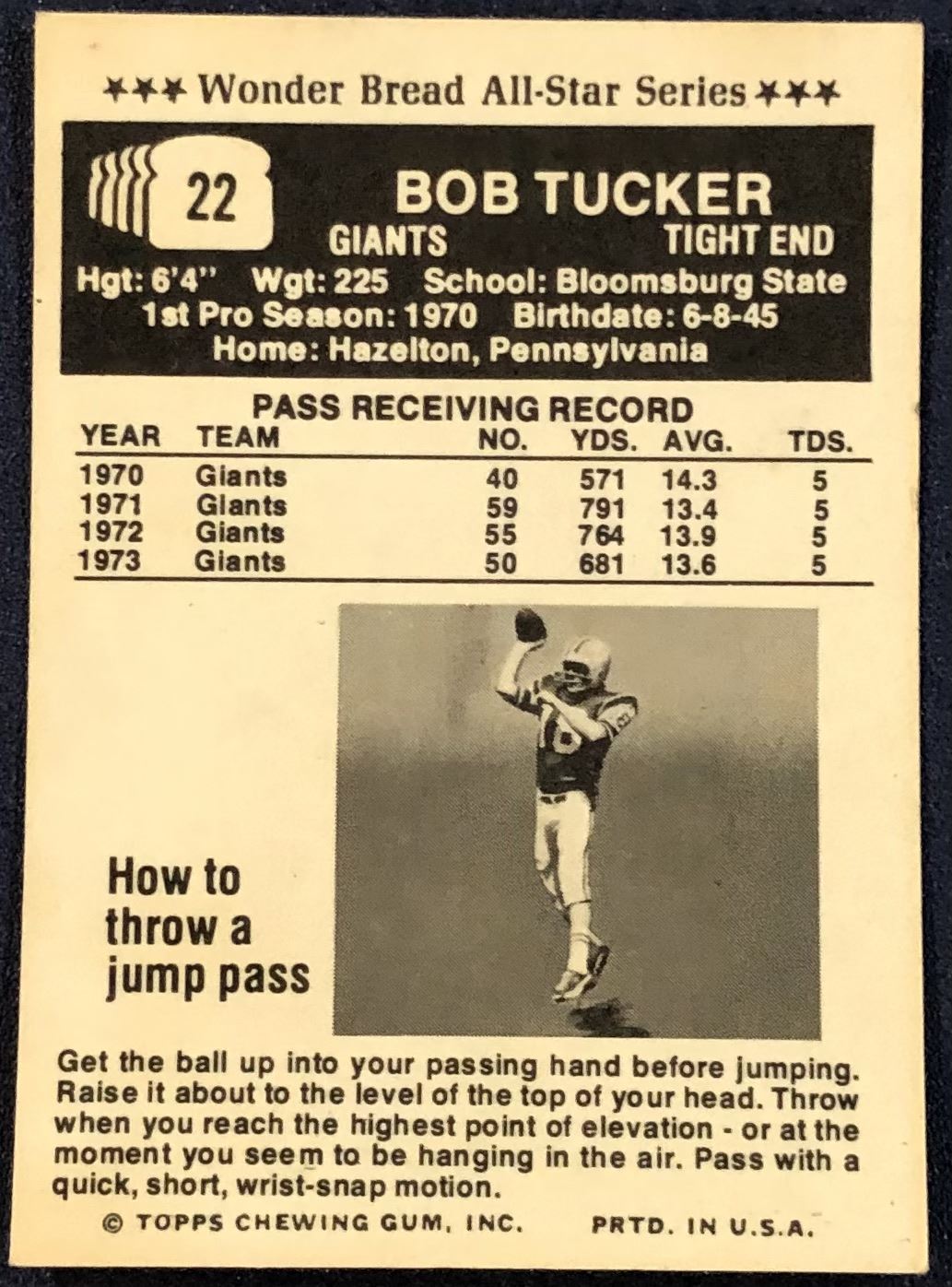 Lot 623 1974 TOPPS WONDER BREAD NFL FOOTBALL BOB TUCKER