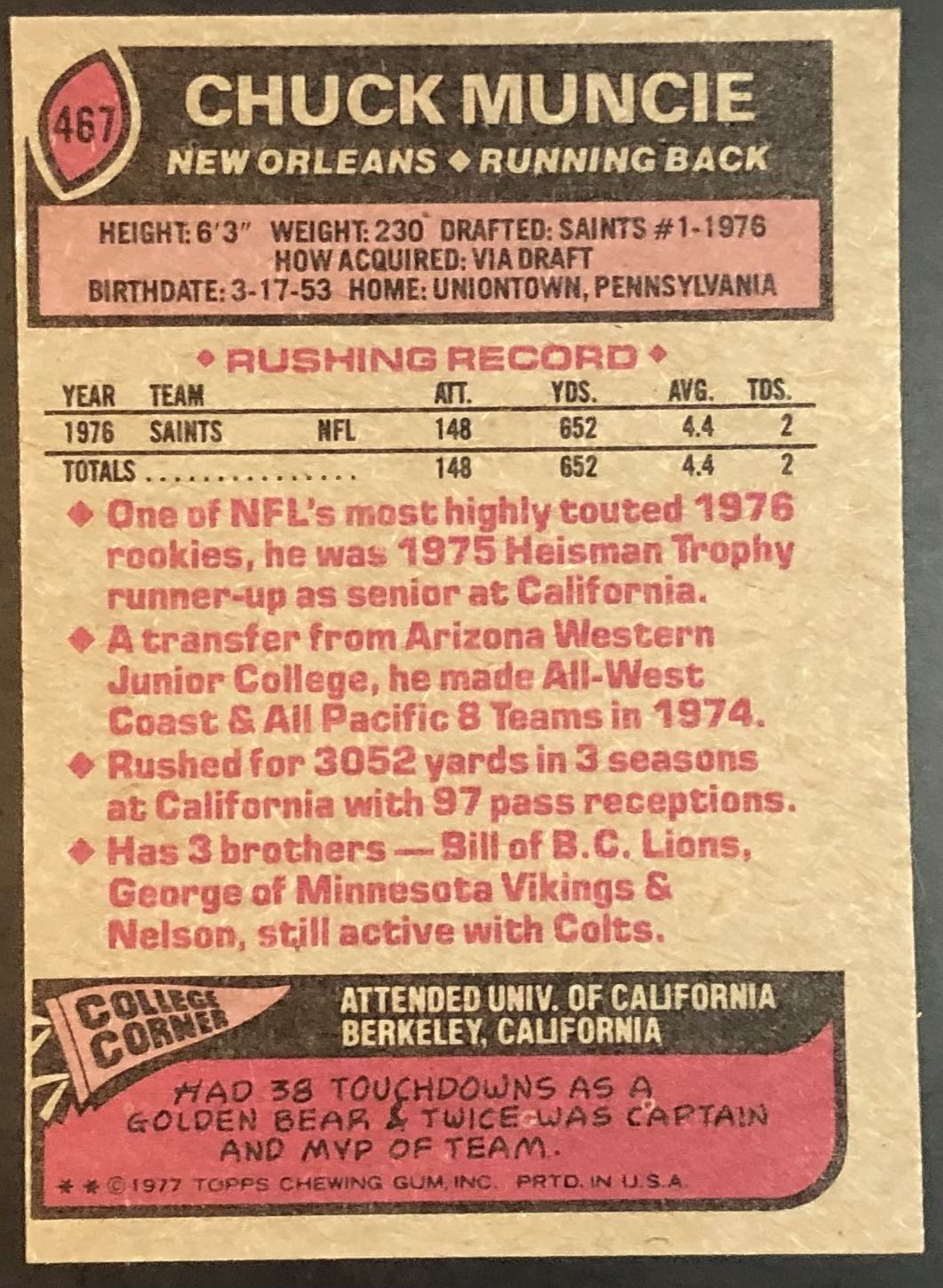 Lot 628 1977 TOPPS CHUCK MUNCIE ROOKIE CARD