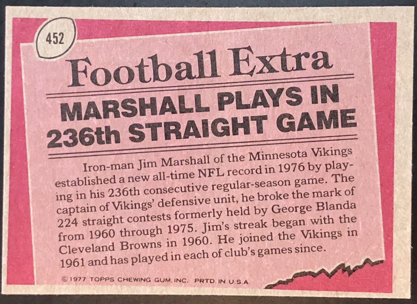Lot 639 1977 TOPPS NFL JIM MARSHALL (HOF)