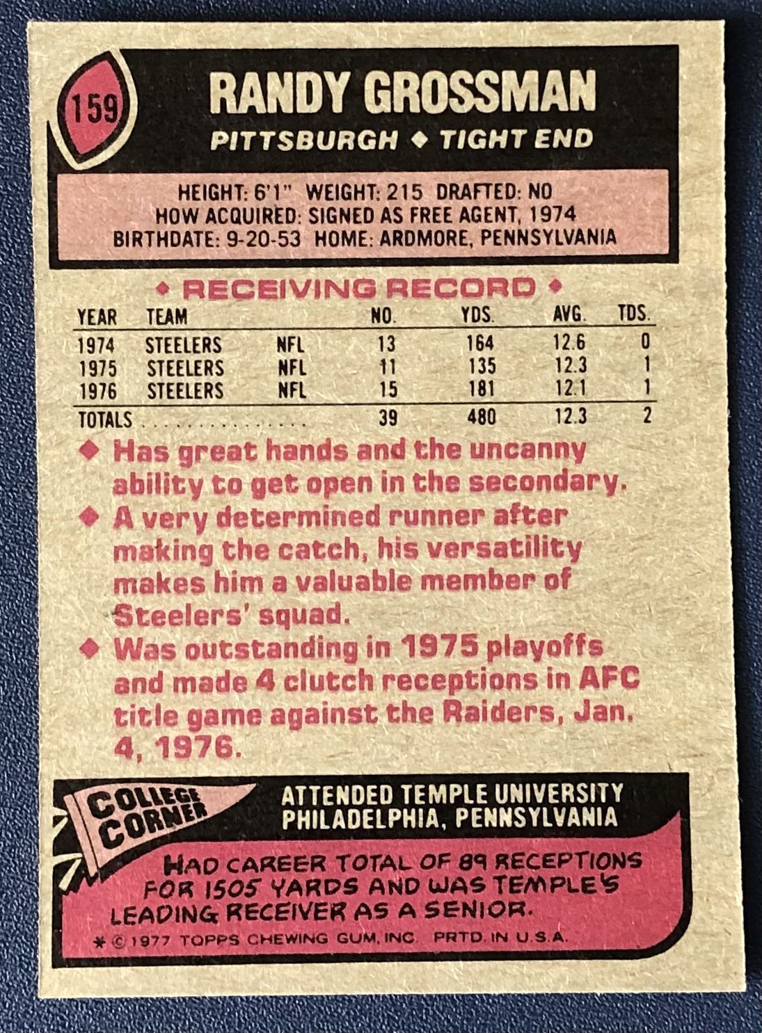 Lot 640 1977 TOPPS RANDY GROSSMAN ROOKIE CARD