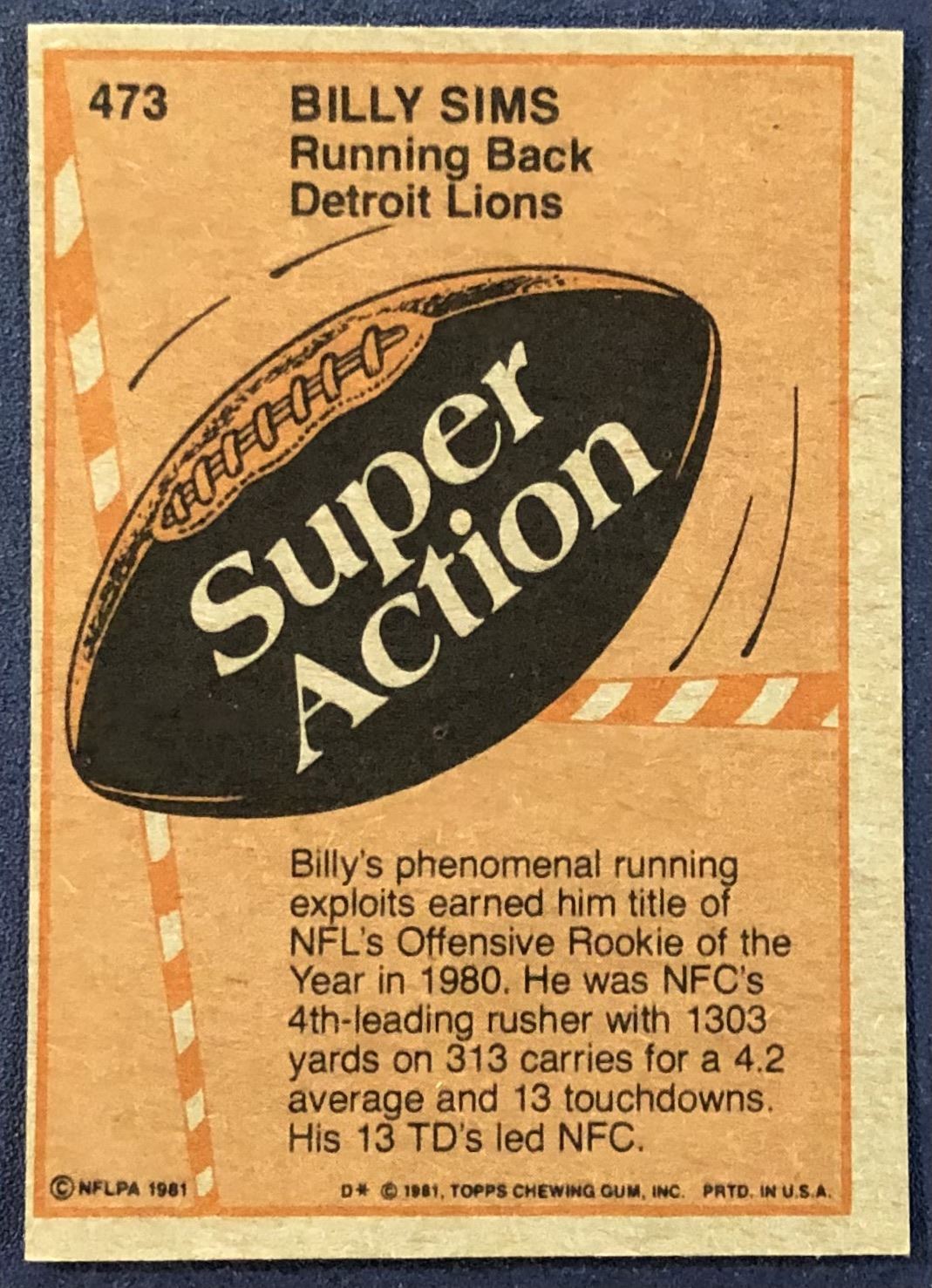 Lot 660 1981 TOPPS NFL BILLY SIMS ROOKIE CARD