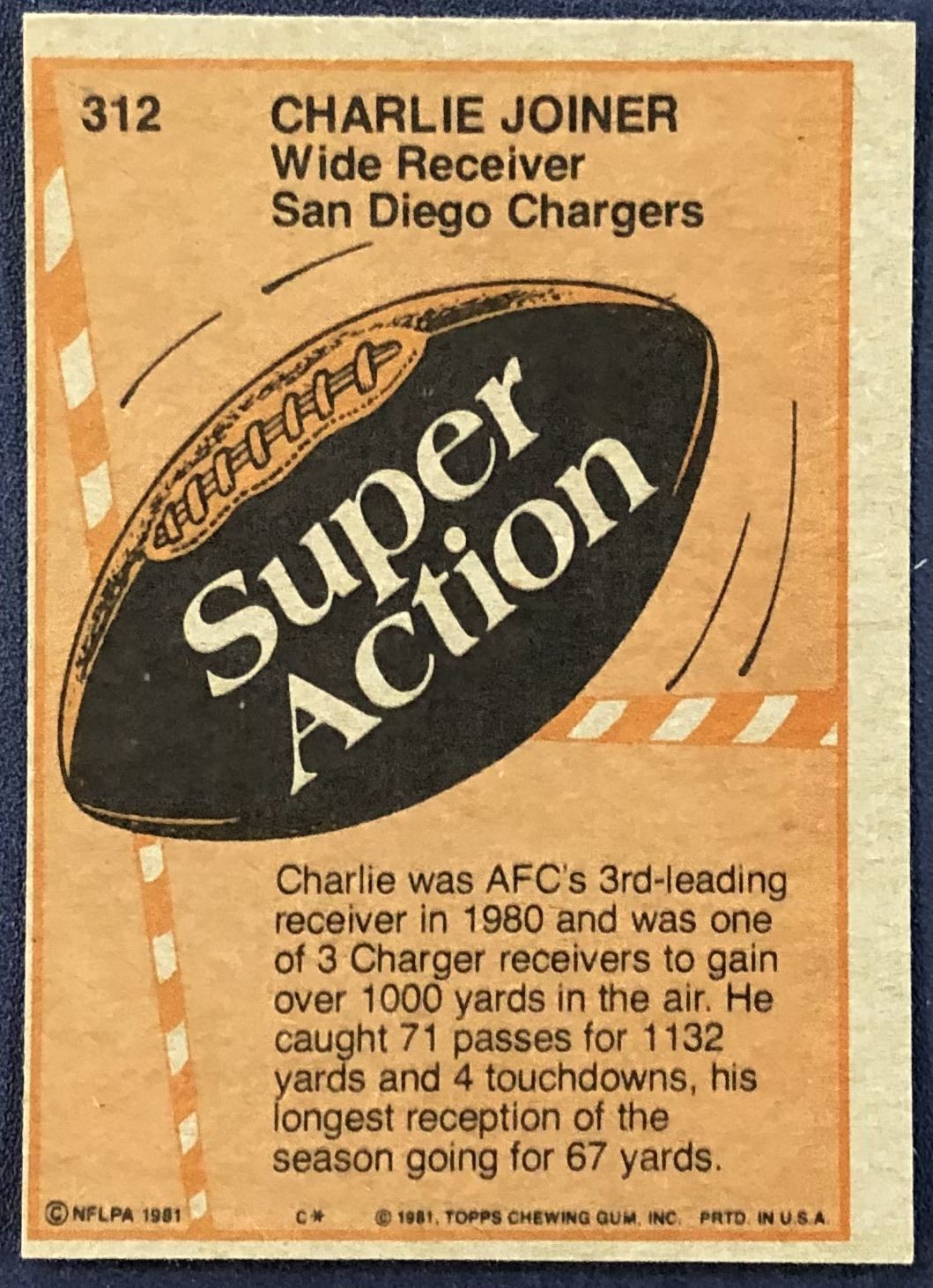 Lot 665 1981 TOPPS NFL CHARLIE JOINER (HOF)