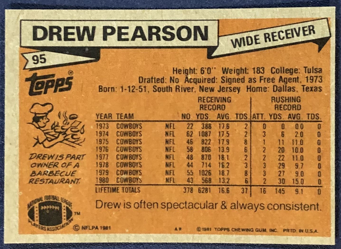 Lot 681 1981 TOPPS NFL DREW PEARSON (HOF)