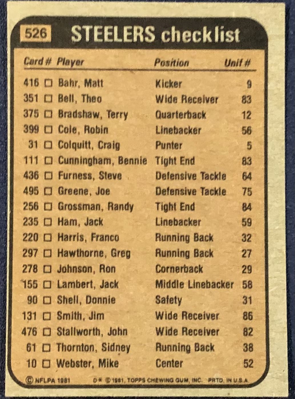 Card #526 NFL, football, vintage, hall of fame