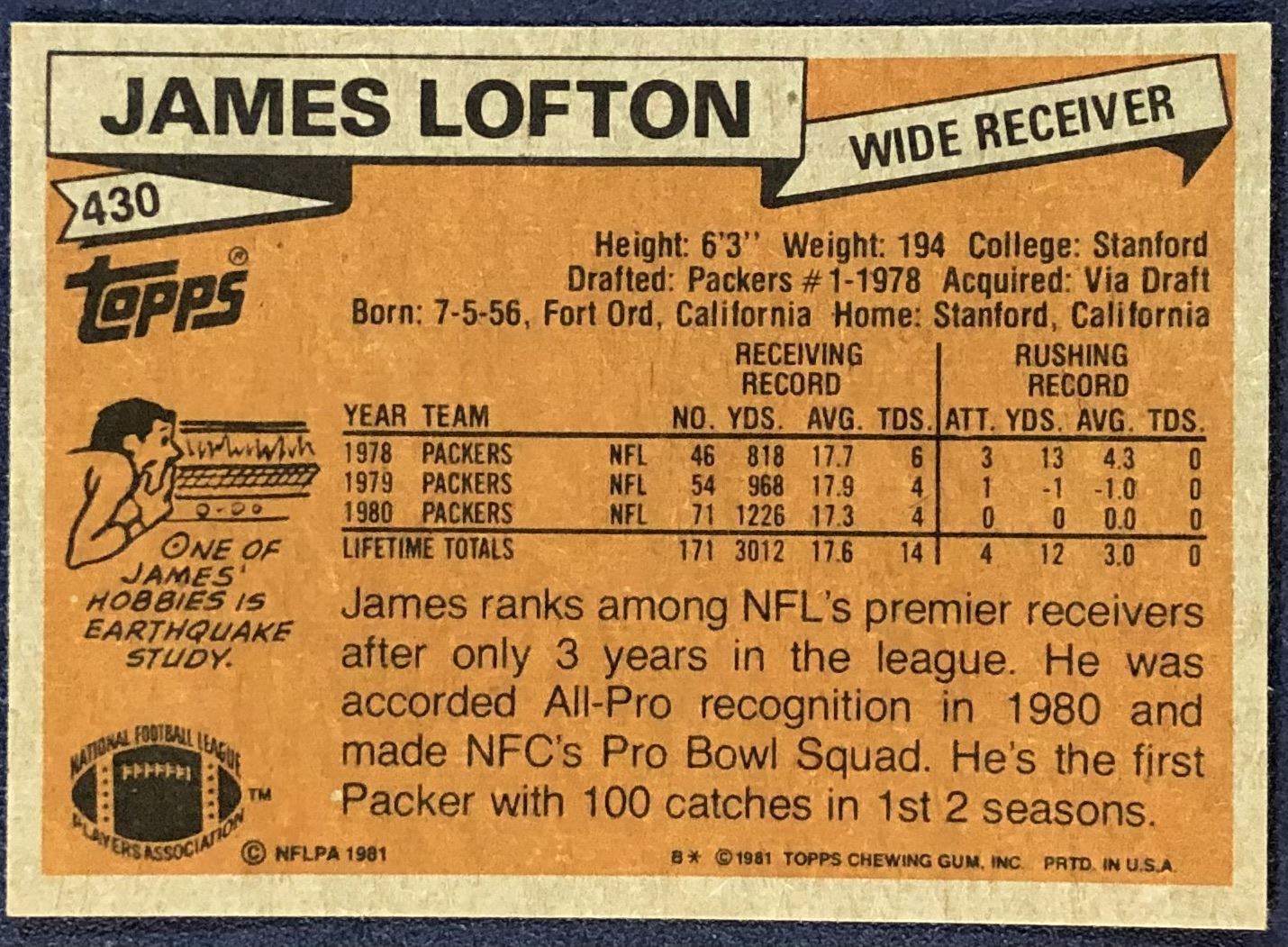 Lot 693 1981 TOPPS NFL JAMES LOFTON