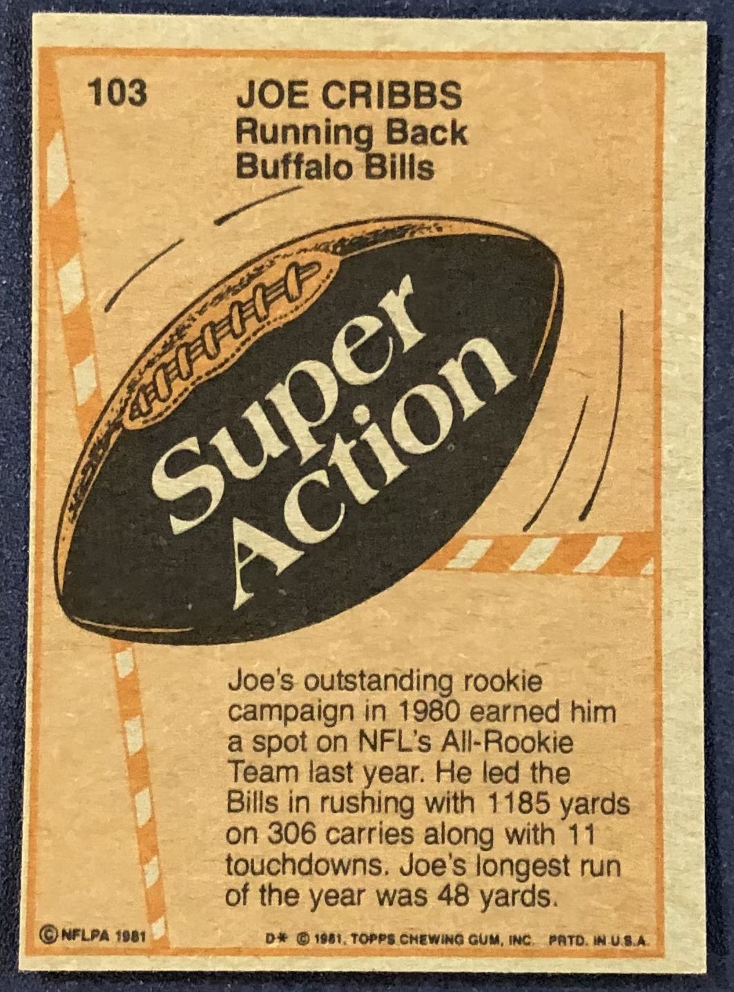 Lot 698 1981 TOPPS NFL JOE CRIBBS ROOKIE CARD