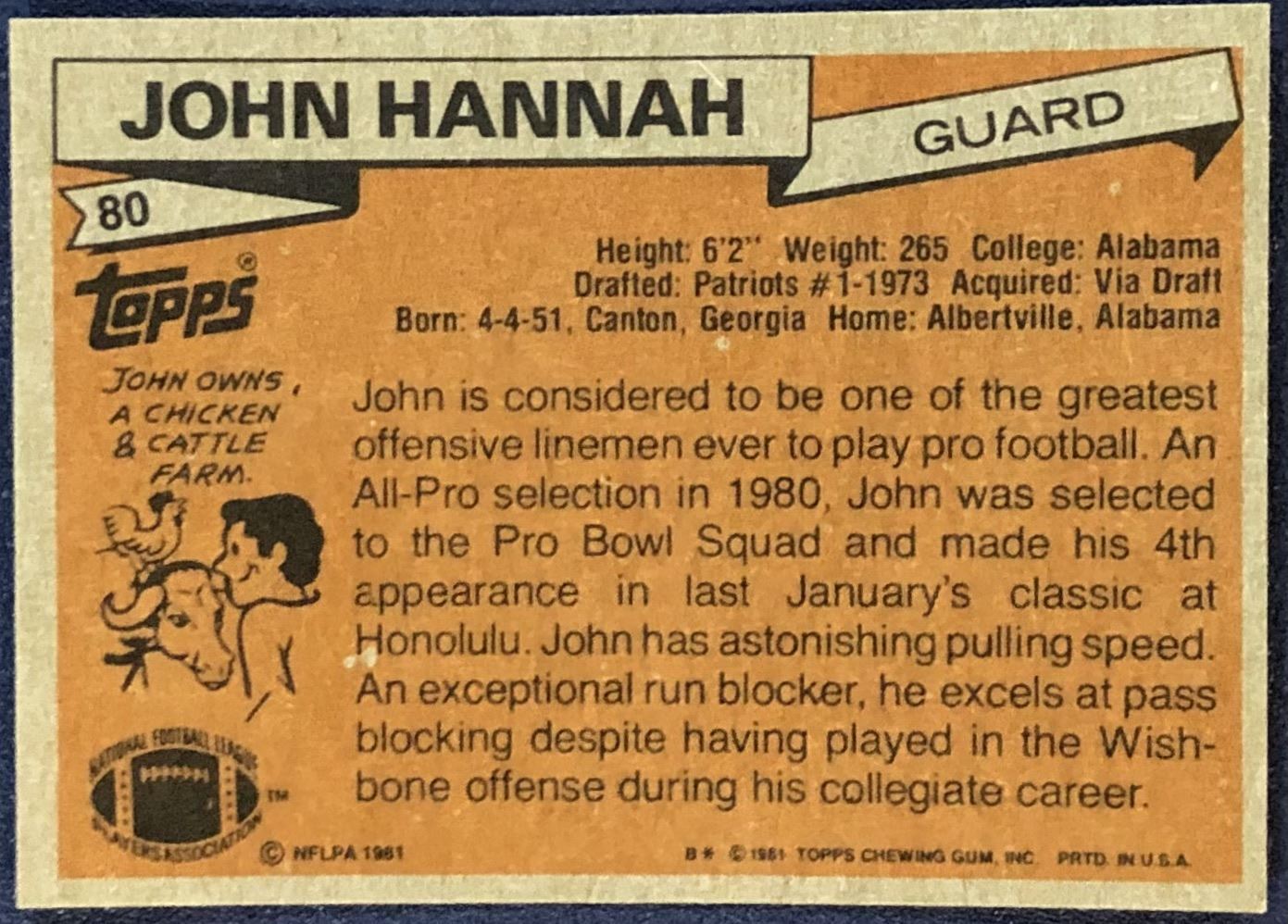 Lot 700 1981 TOPPS NFL JOHN HANNAH (HOF)