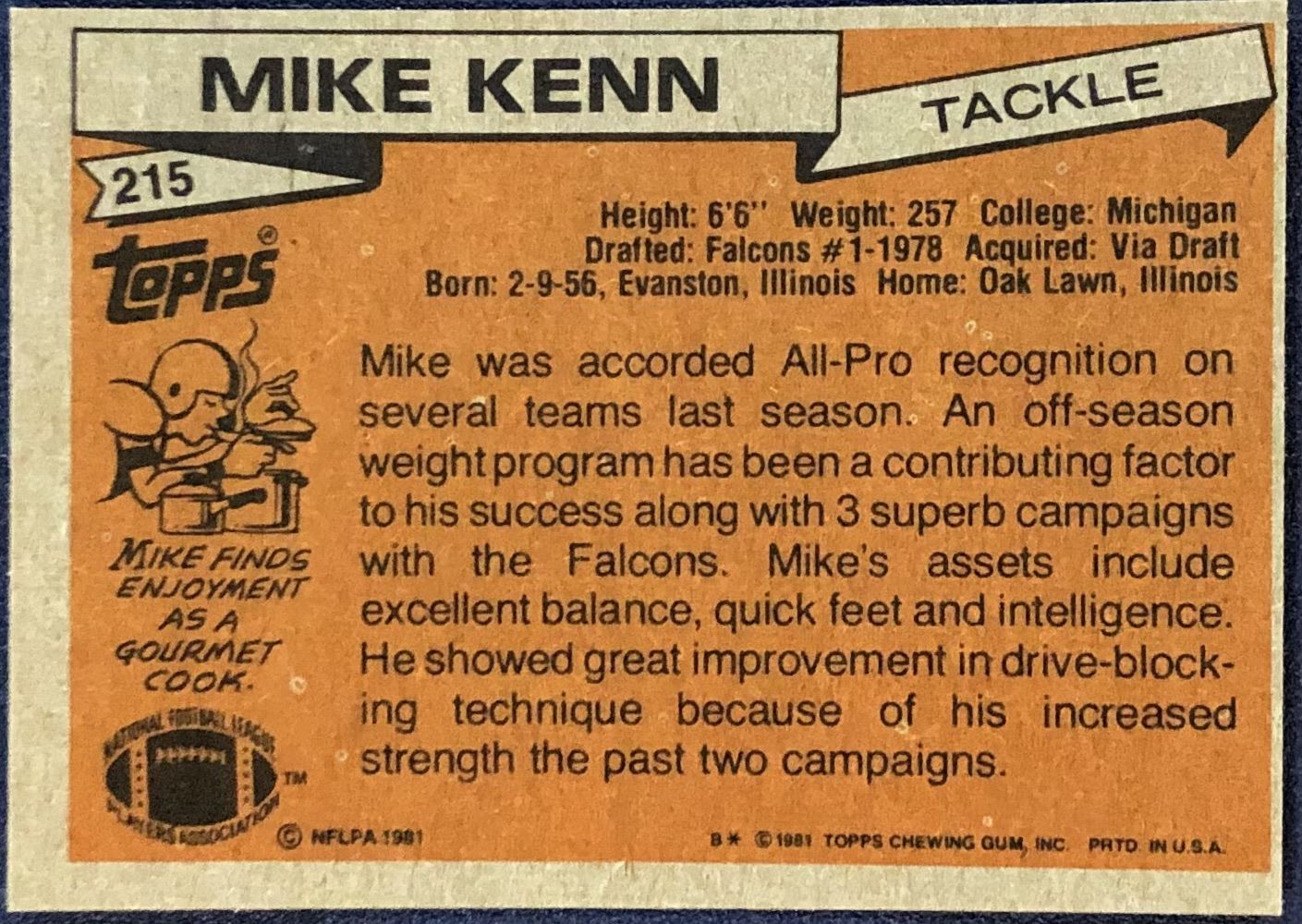 Lot 718 1981 TOPPS NFL MIKE KENN ROOKIE CARD
