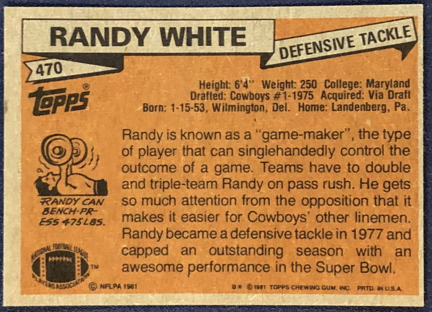 Lot 731 1981 TOPPS NFL RANDY WHITE (HOF)