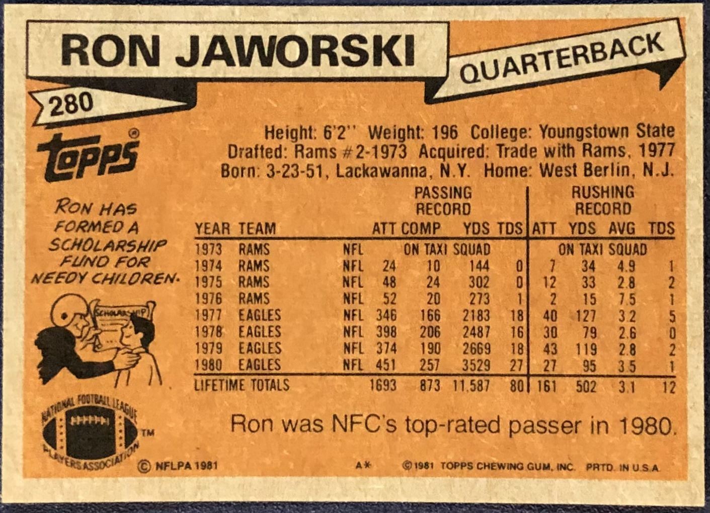 Lot 737 1981 TOPPS NFL RON JAWORSKI
