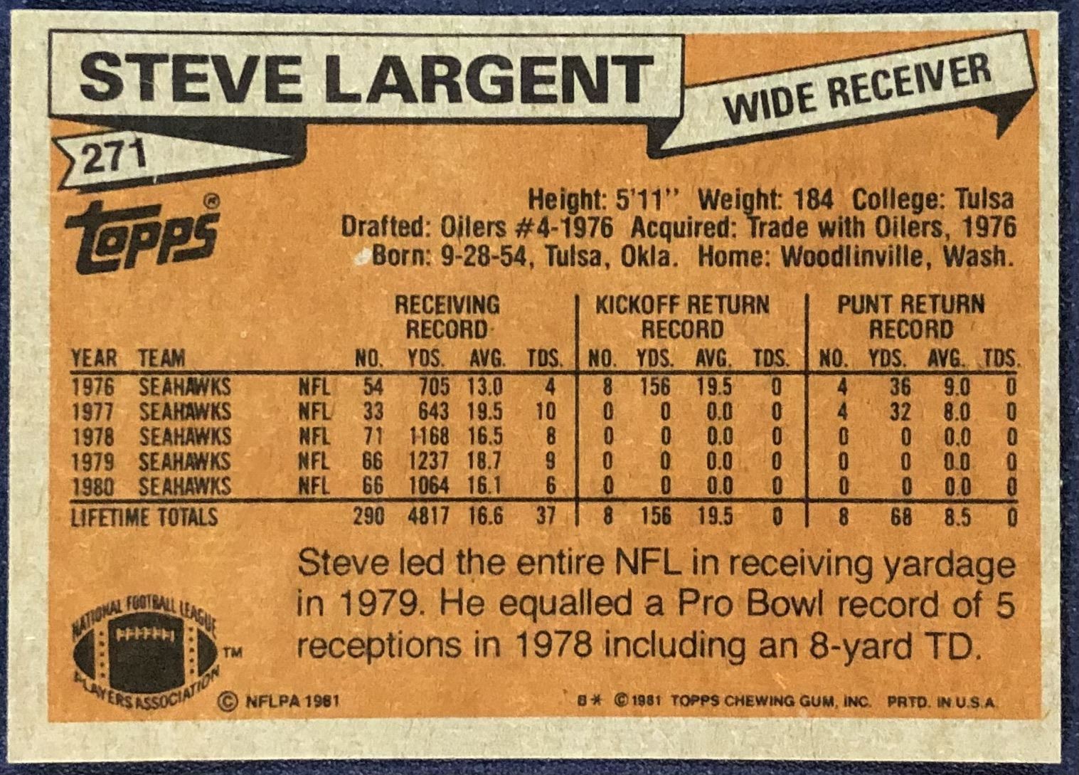 Lot 741 1981 TOPPS NFL STEVE LARGENT (HOF)