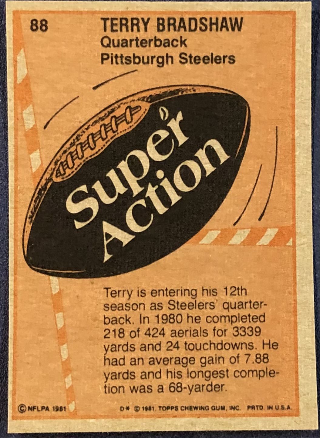 Lot 742 1981 TOPPS NFL TERRY BRADSHAW (HOF)