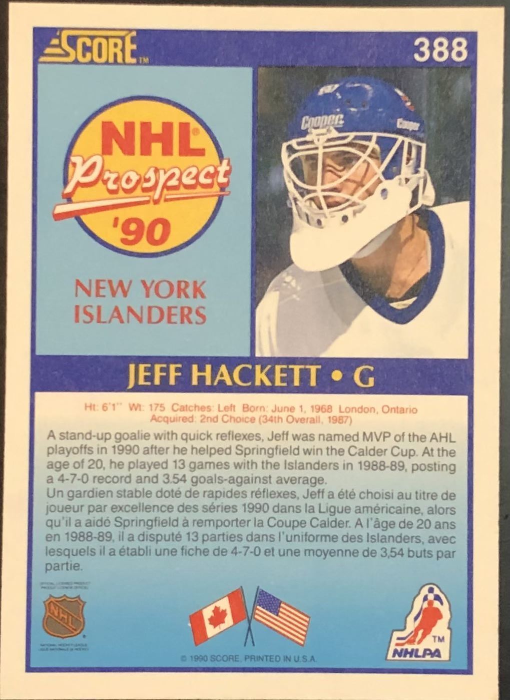 Lot 767 1990-91 SCORE JEFF HACKETT ROOKIE CARD
