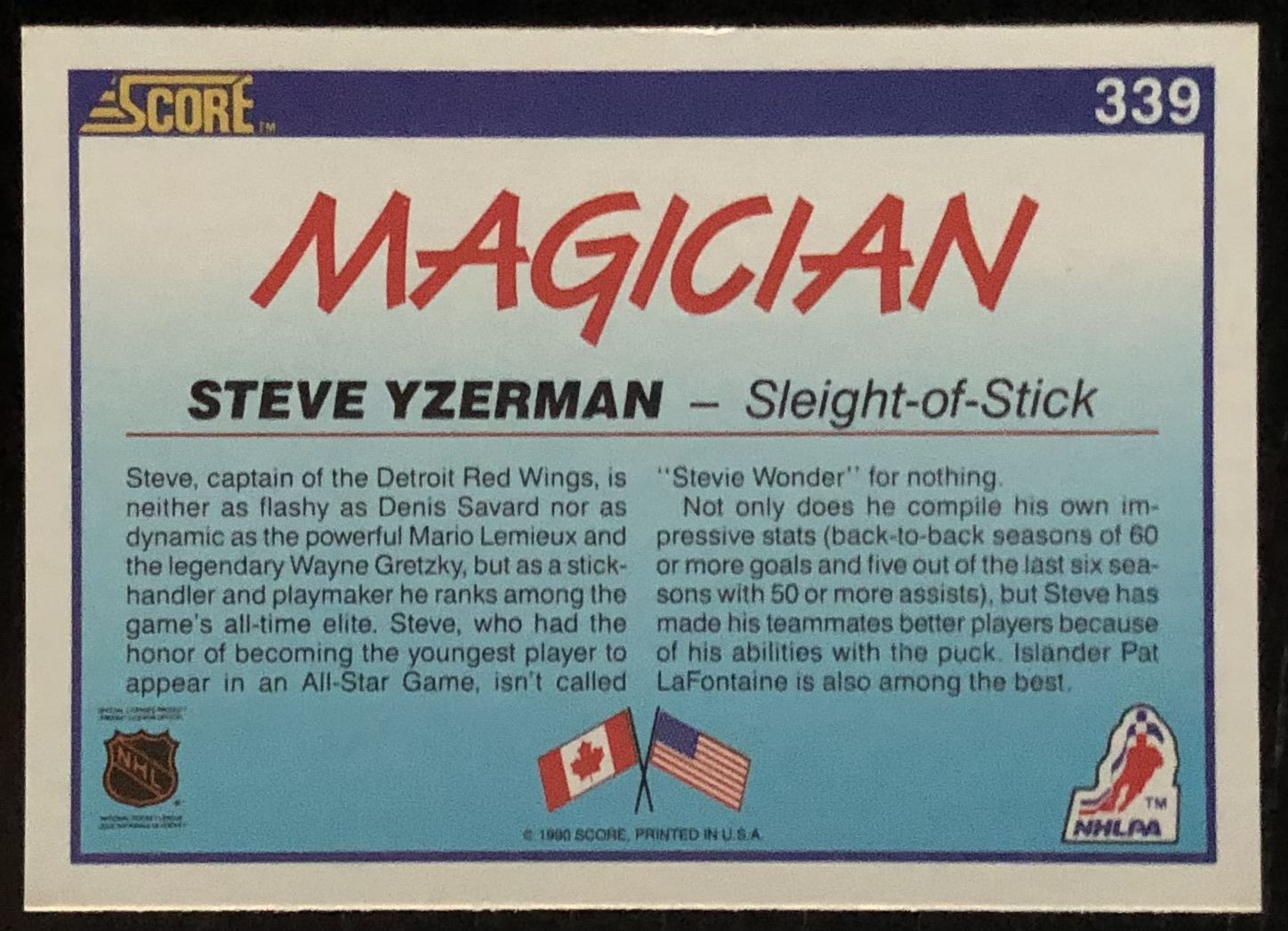 Lot 770 1990-91 SCORE STEVE YZERMAN (HOF)