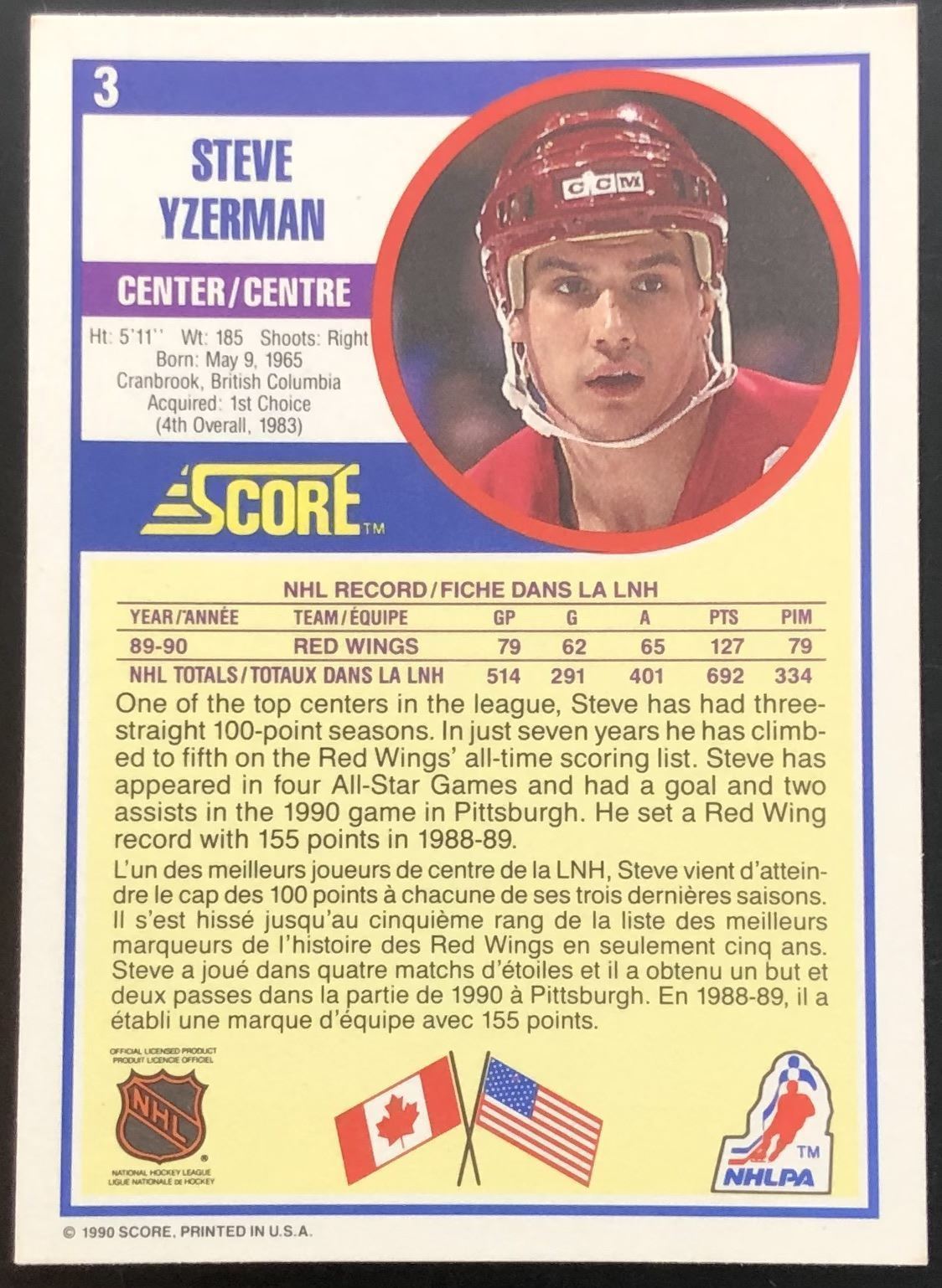 Lot 771 1990-91 SCORE STEVE YZERMAN (HOF)