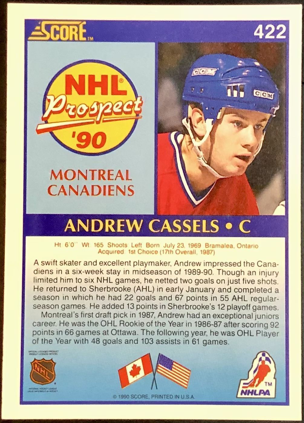 Lot 772 1990-91 SCRE ANDREW CASSELS ROOKIE CARD