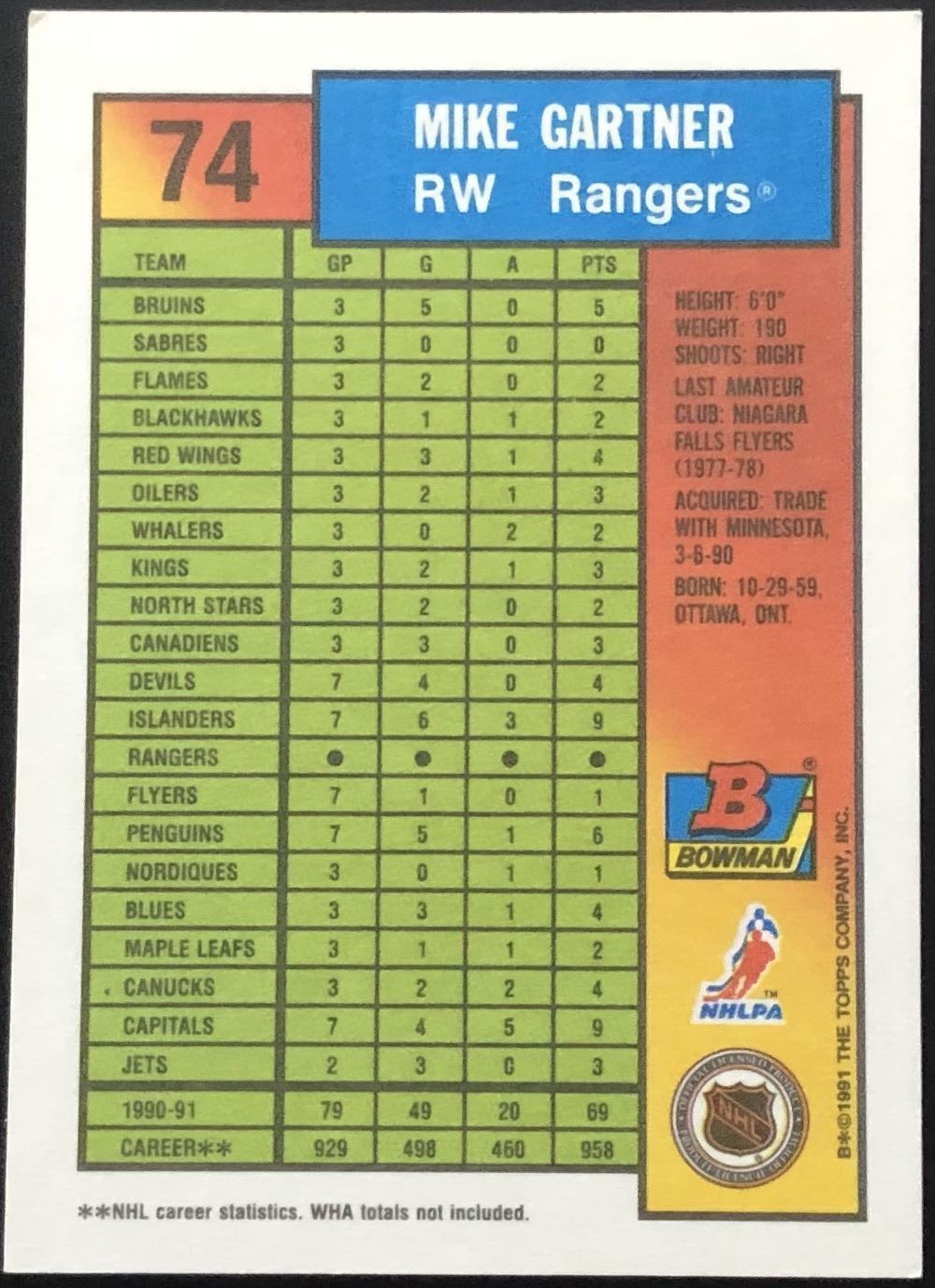 Lot 780 1991-92 BOWMAN MIKE GARTNER (HOF)