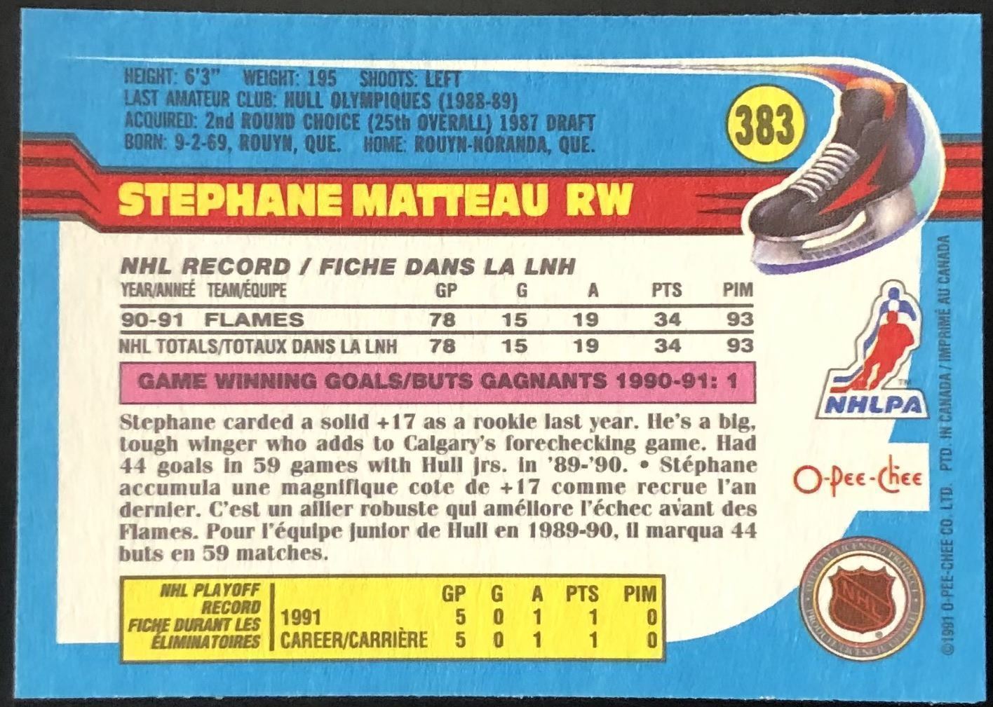 Lot 785 1991-92 O-PEE-CHEE STEPHANE MATTEAU ROOKIE CARD