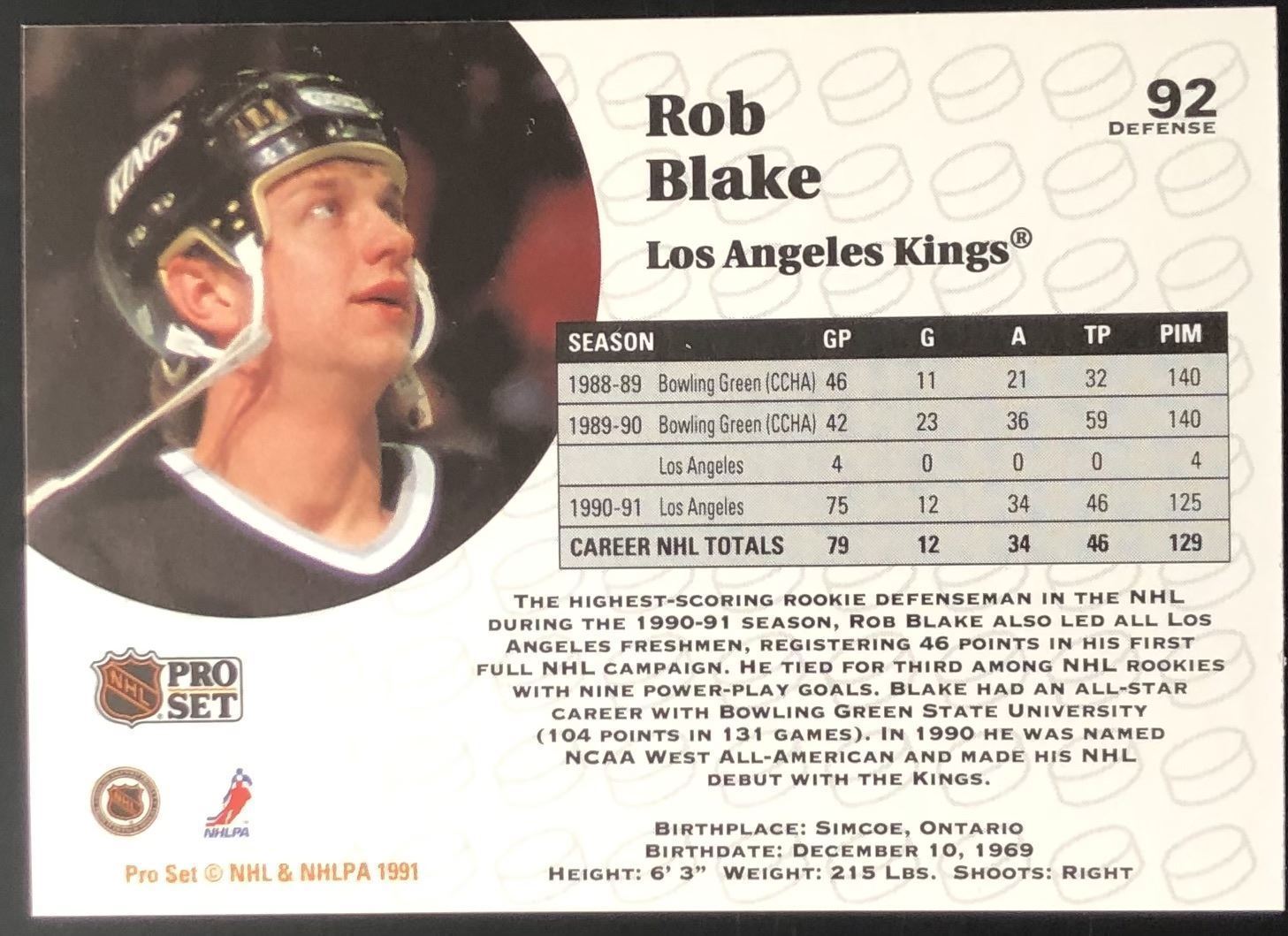 Lot 794 1991-92 PRO SET ROB BLAKE (HOF) ROOKIE CARD