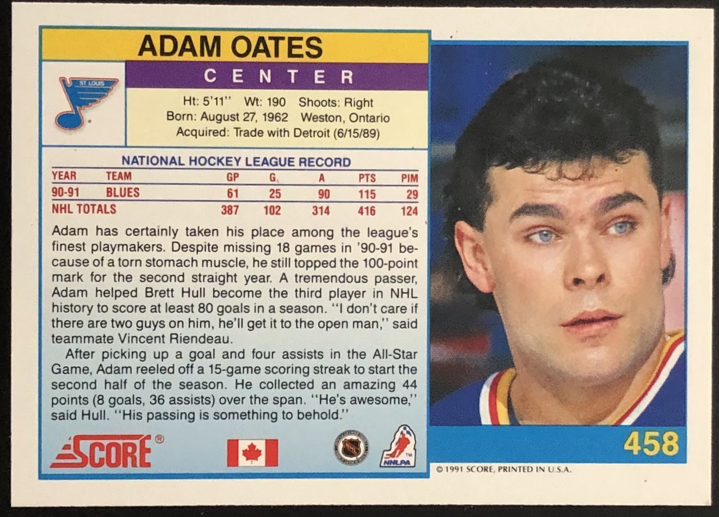 Lot 799 1991-92 SCORE ADAM OATES (HOF}