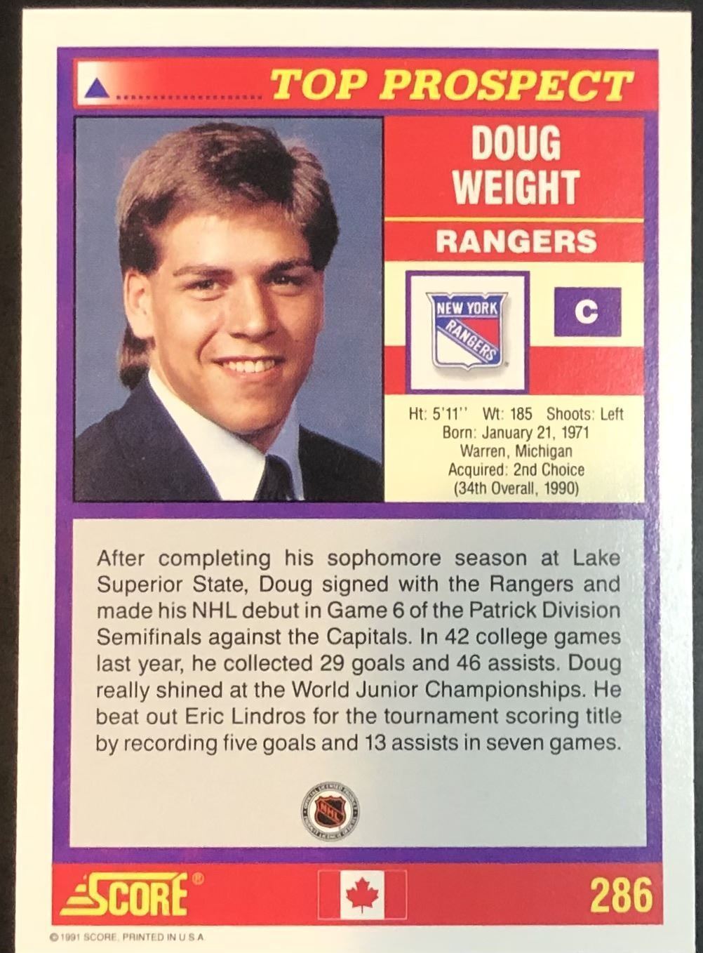 Lot 802 1991-92 SCORE DOUG WEIGHT ROOKIE CARD