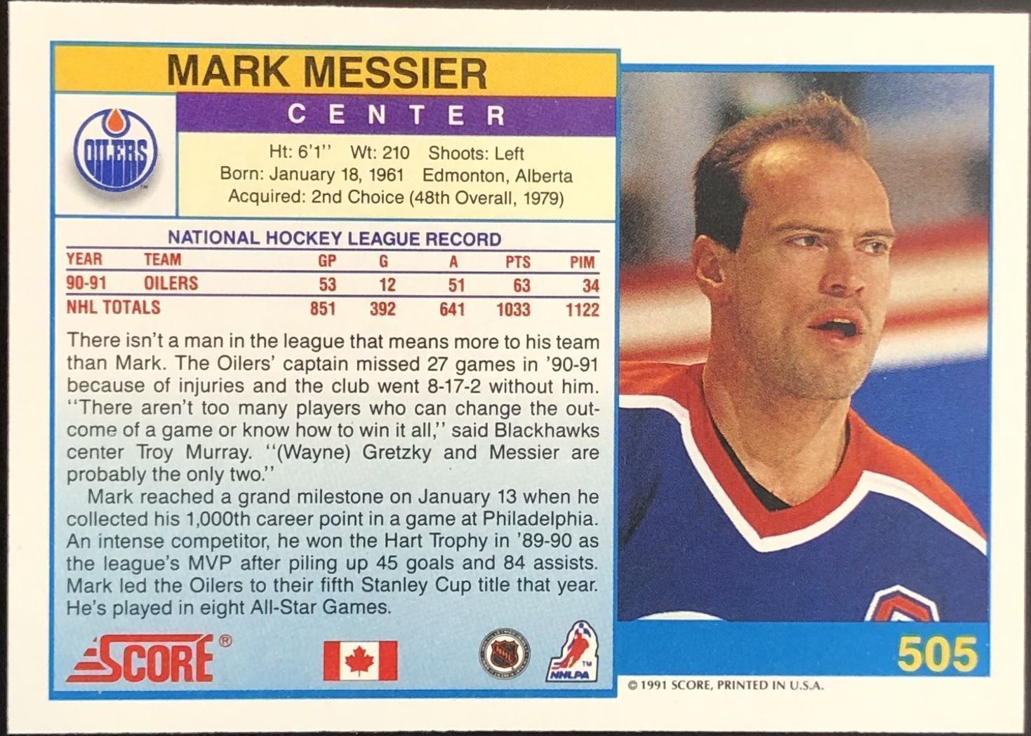 Lot 807 1991-92 SCORE MARK MESSIER (HOF)