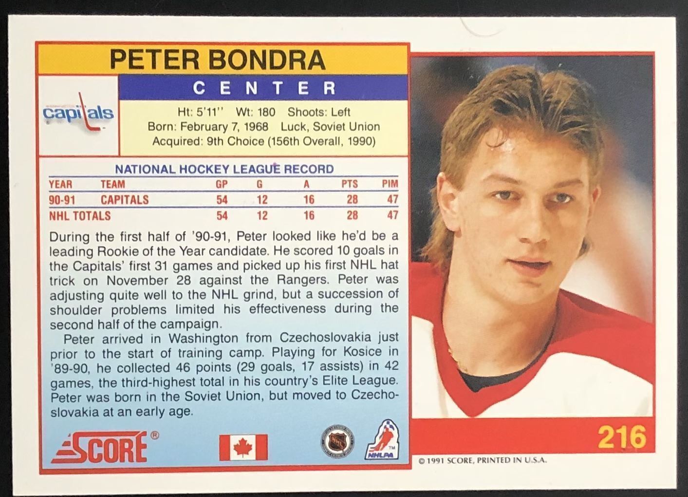 Lot 810 1991-92 SCORE PETER BONDRA ROOKIE CARD