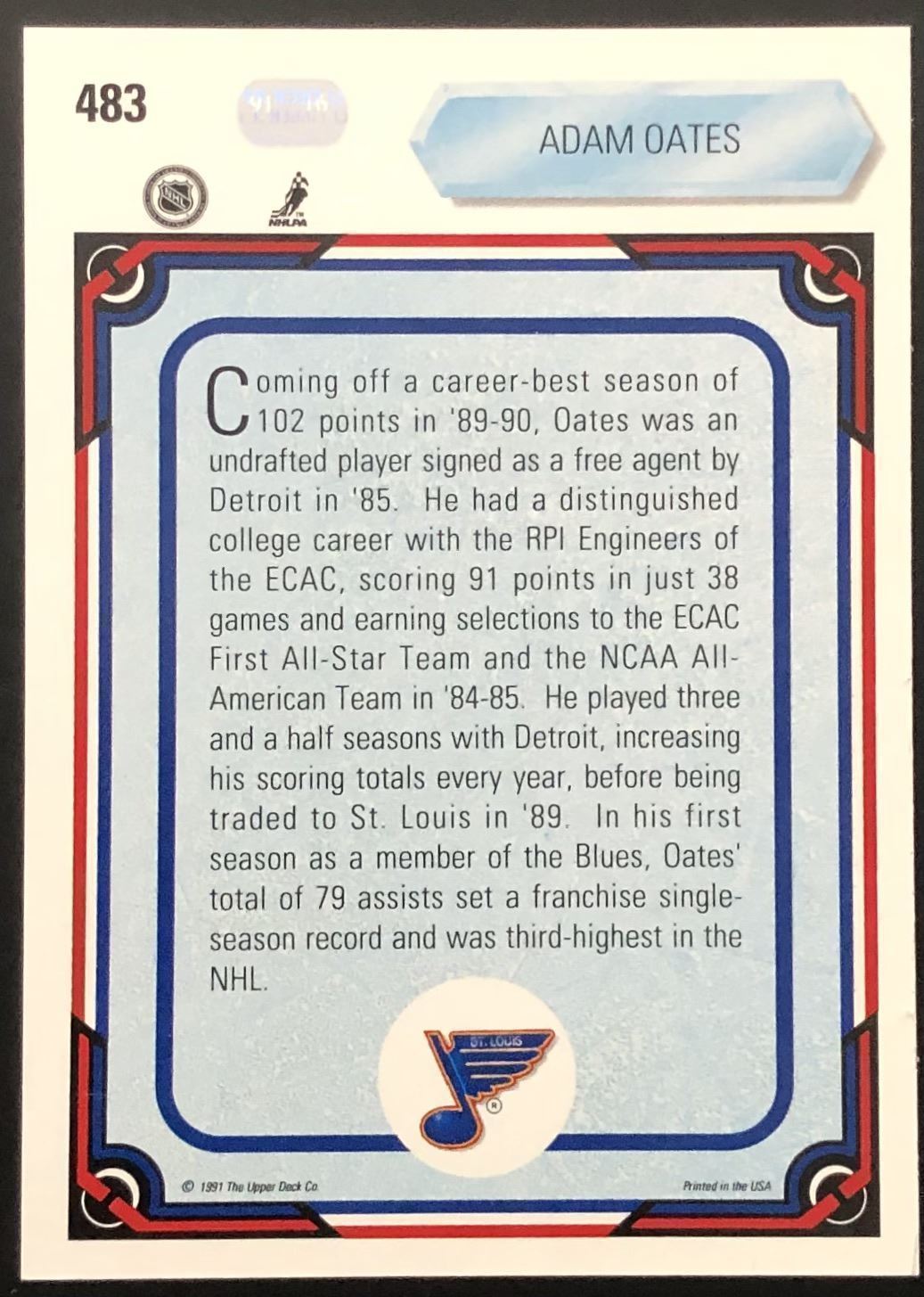 Lot 815 1991-92 UPPER DECK ADAM OATES (HOF)