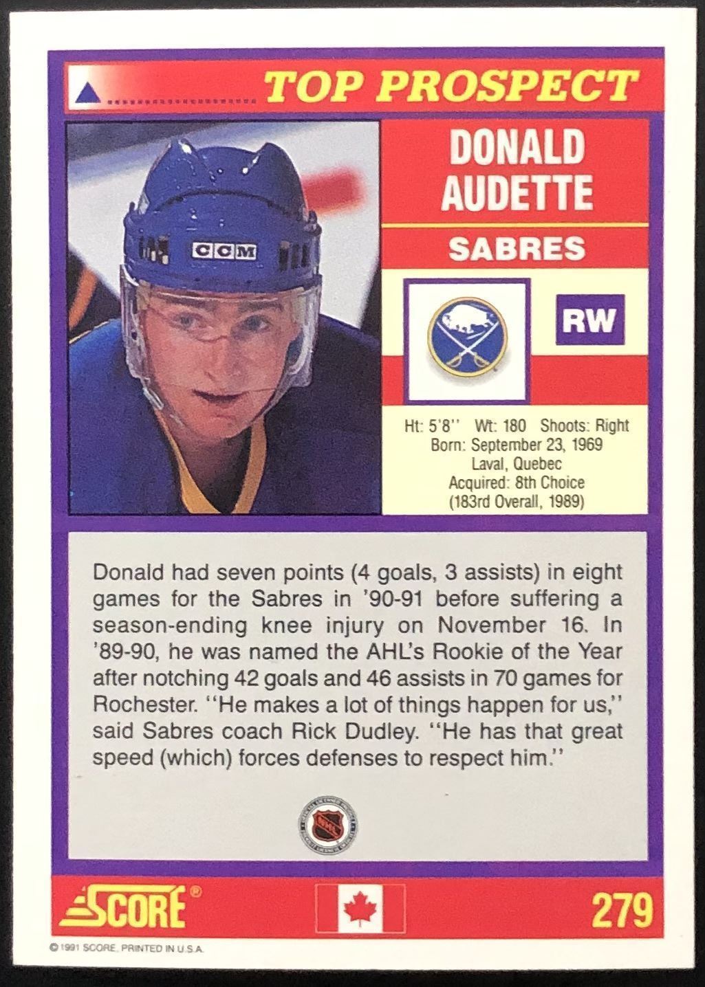 Lot 820 1992 SCORE DONALD AUDETTE ROOKIE CARD