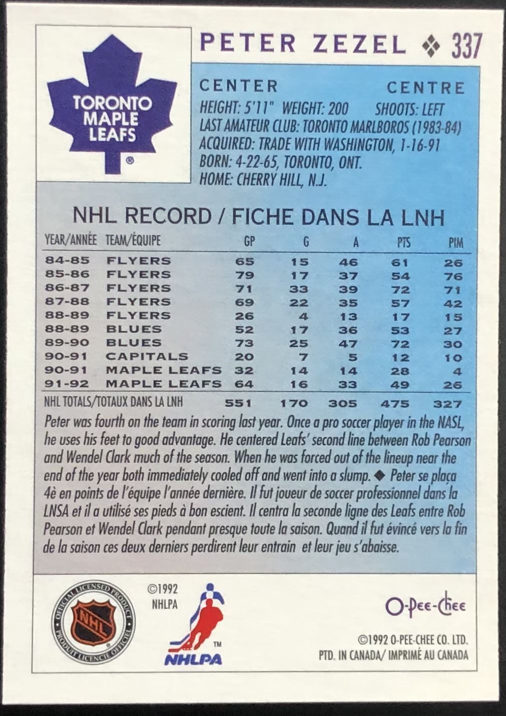 Lot 825 1992-93 O-PEE-CHEE PETER ZEZEL