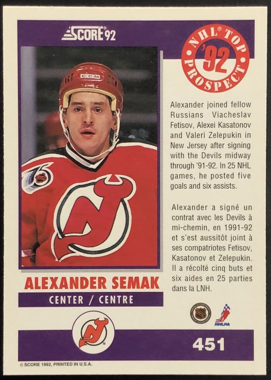 Lot 829 1992-93 SCORE ALEXANDER SEMAK ROOKIE CARD