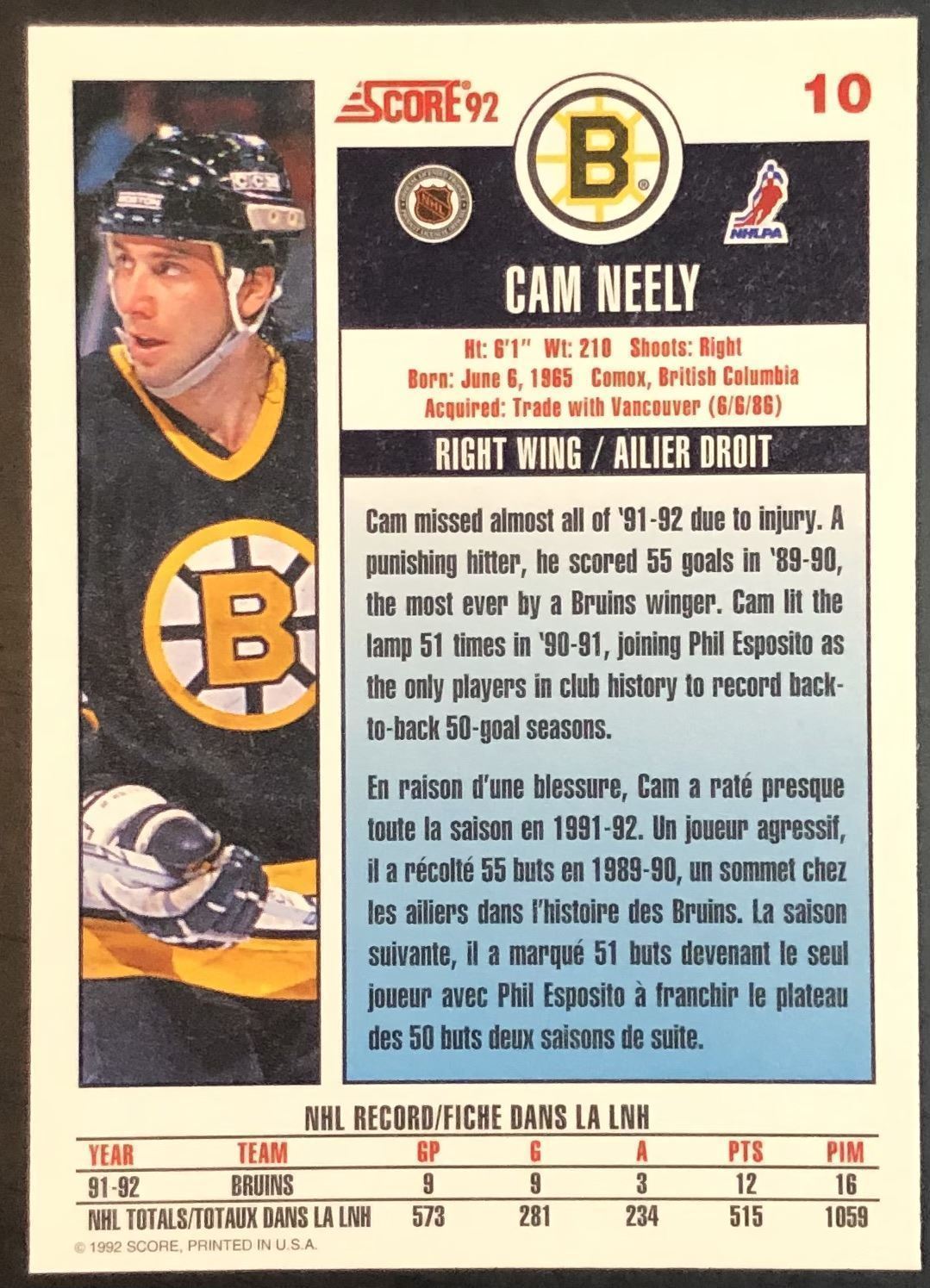 Lot 830 1992-93 SCORE CAM NEELY (HOF)