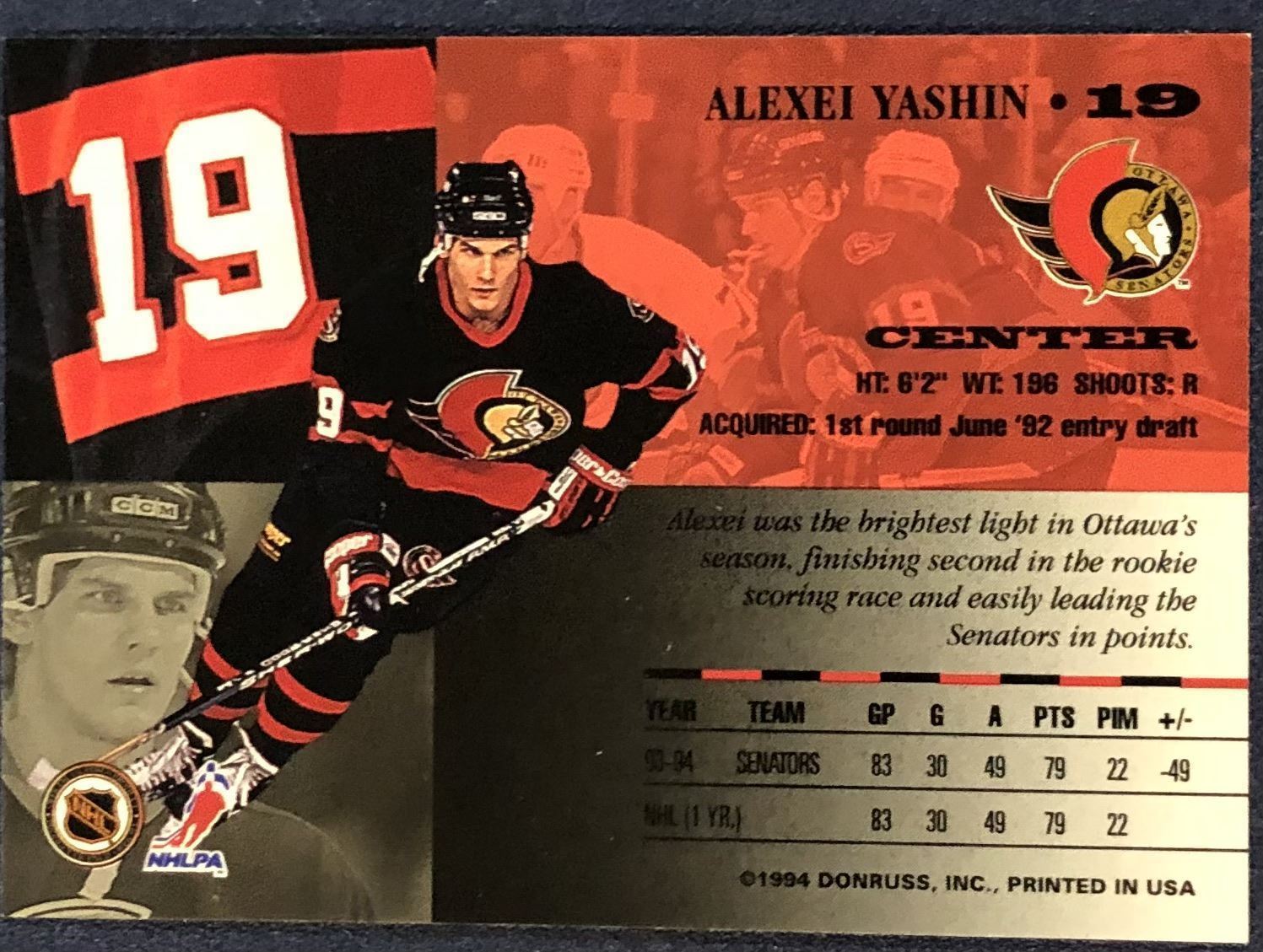 Lot 837 1994-95 LEAF ALEXEI YASHIN ROOKIE CARD