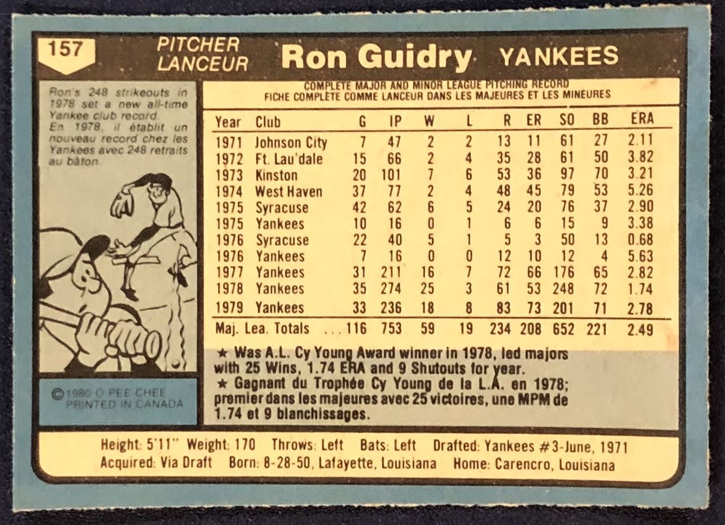 Lot 851 1980 O-PEE-CHEE RON GUIDRY