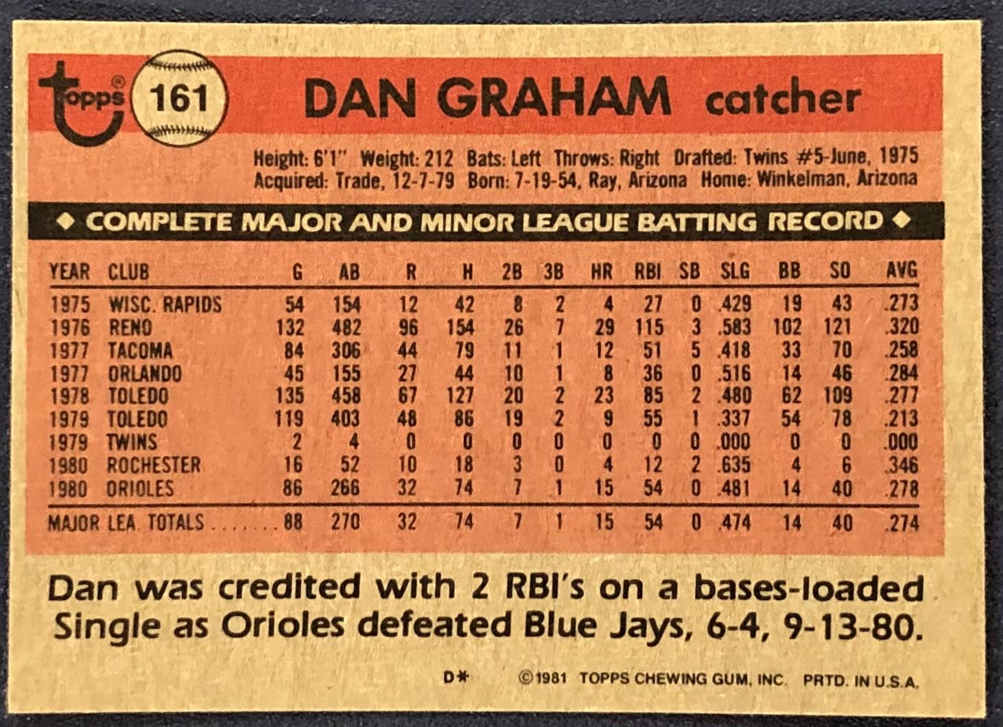 Lot 862 1981 TOPPS DAN GRAHAM ROOKIE CARD - SIGNED