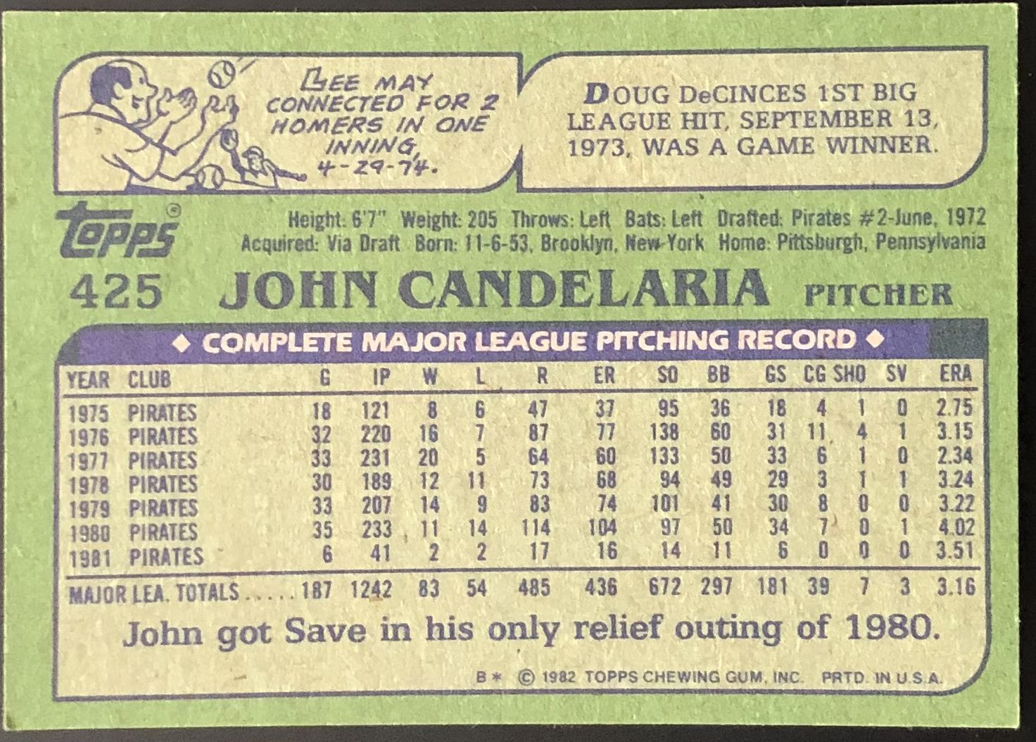 Lot 874 1982 TOPPS JOHN CANDELARIA
