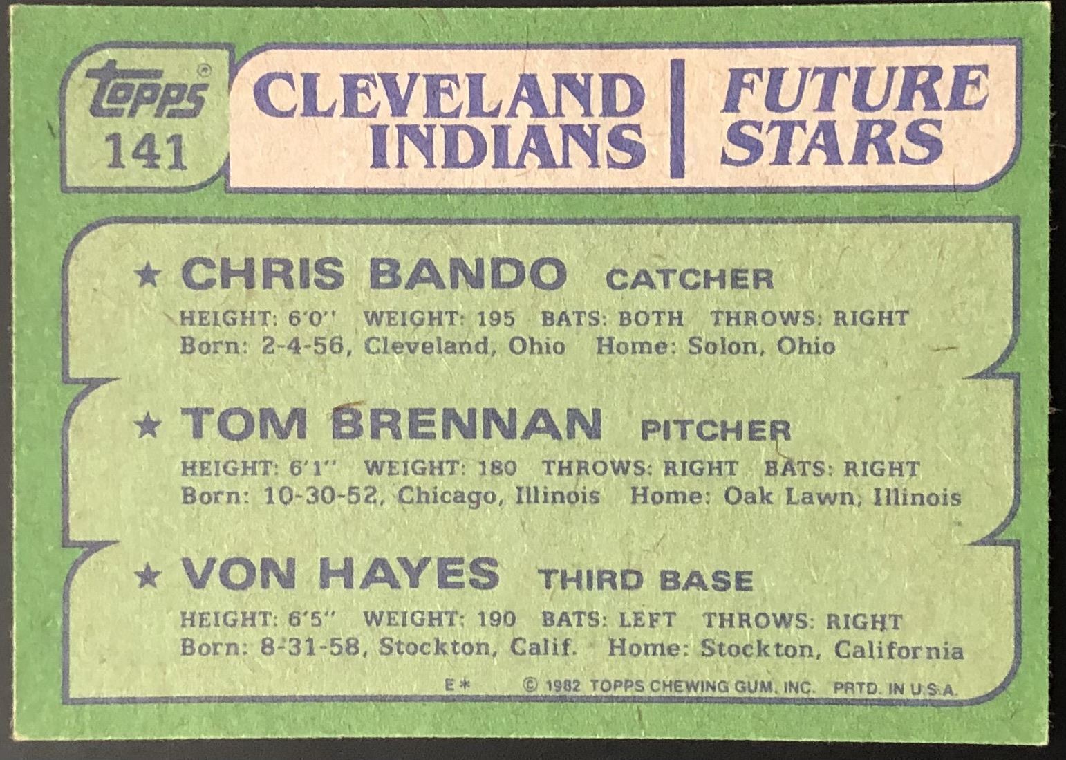 Lot 876 1982 TOPPS VON HAYES ROOKIE CARD