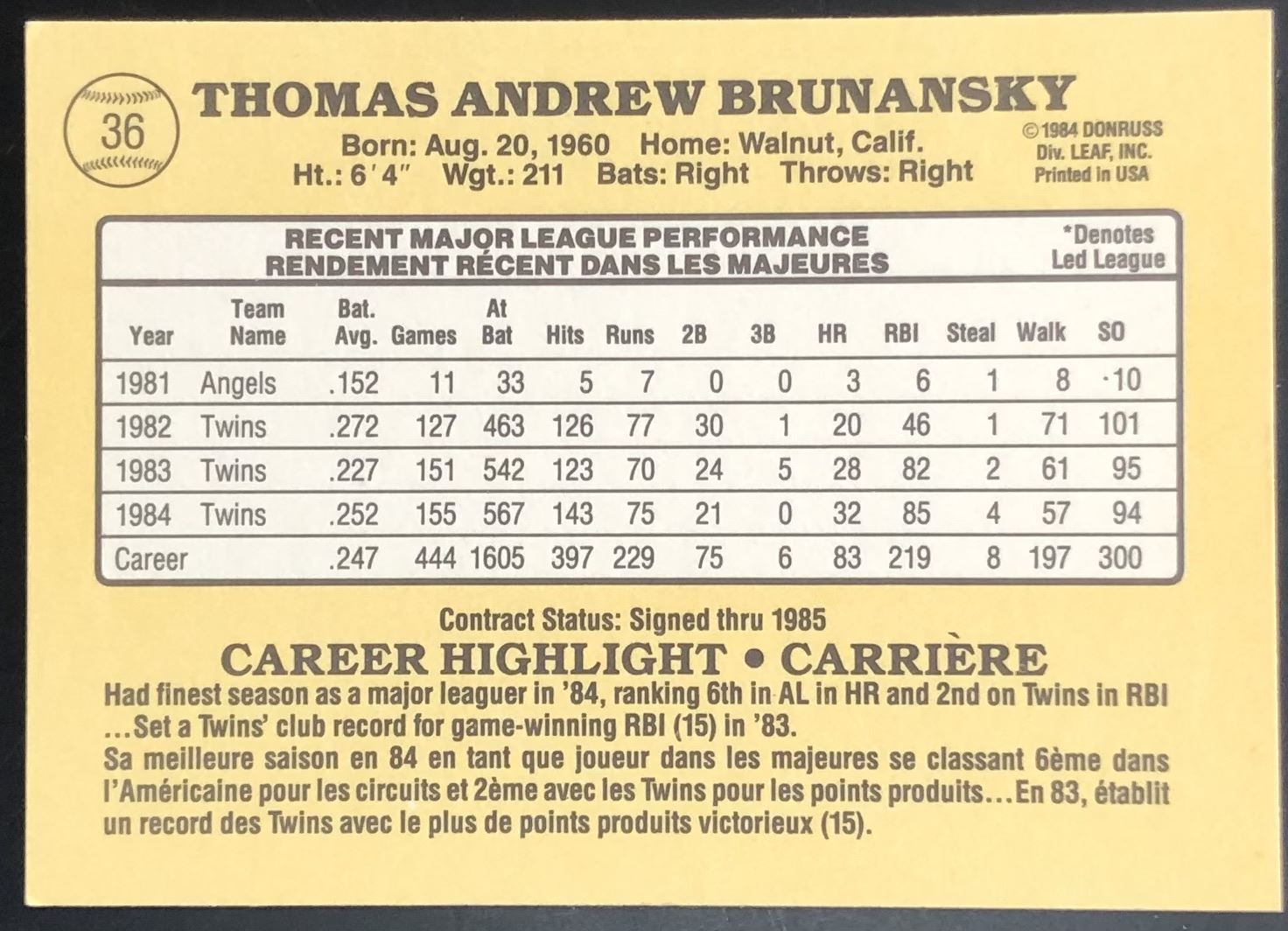 Card #36 Donruss, baseball, MLB, vintage