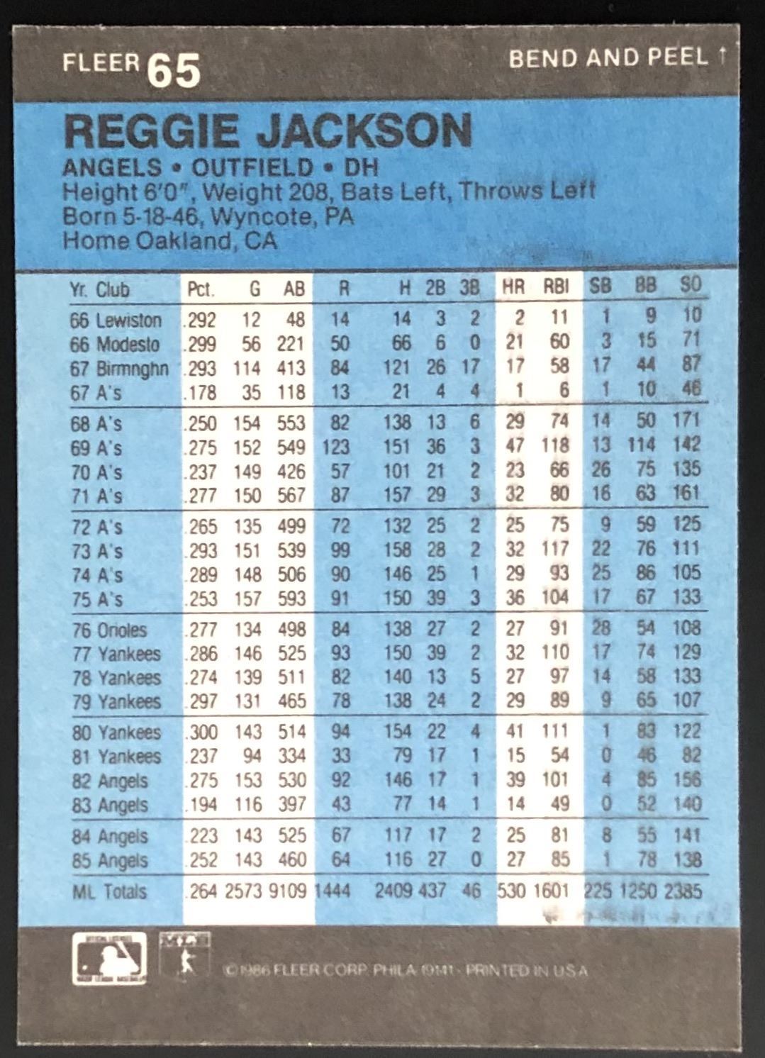 Lot 882 1986 FLEER REGGIE JACKSON (HOF)