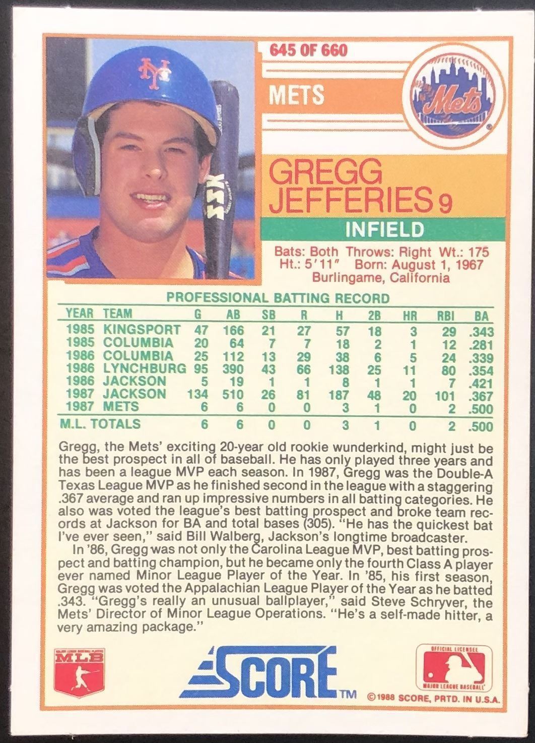 Lot 900 1988 SCORE GREGG JEFFERIES ROOKIE CARD