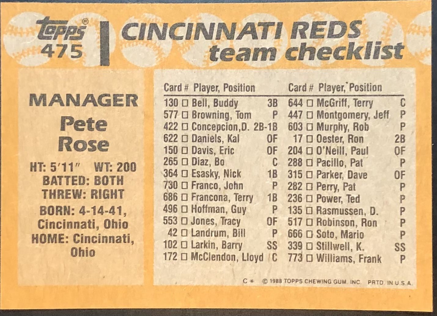 Lot 908 1988 TOPPS PETE ROSE
