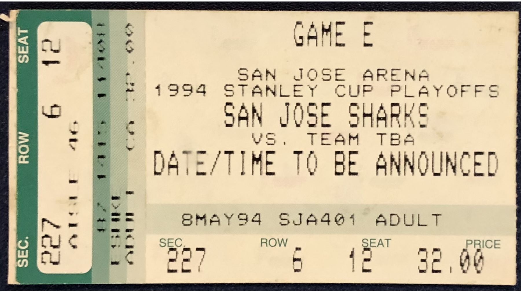 Lot 951 1994 STANLEY CUP TICKET STUB - TORONTO at SAN JOSE, GAME #4