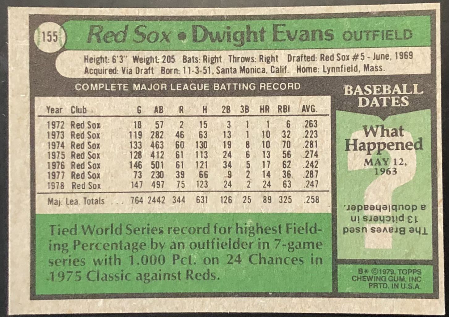 Lot 959 1979 TOPPS DWIGHT EVANS