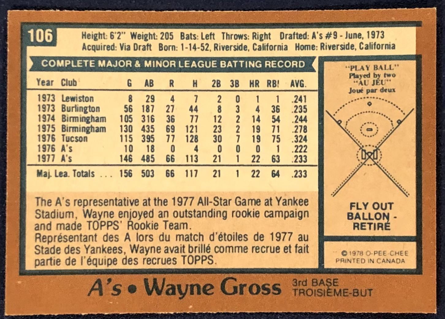 Lot 967 1978 O-PEE-CHEE WAYNE GROSS ROOKIE CARD