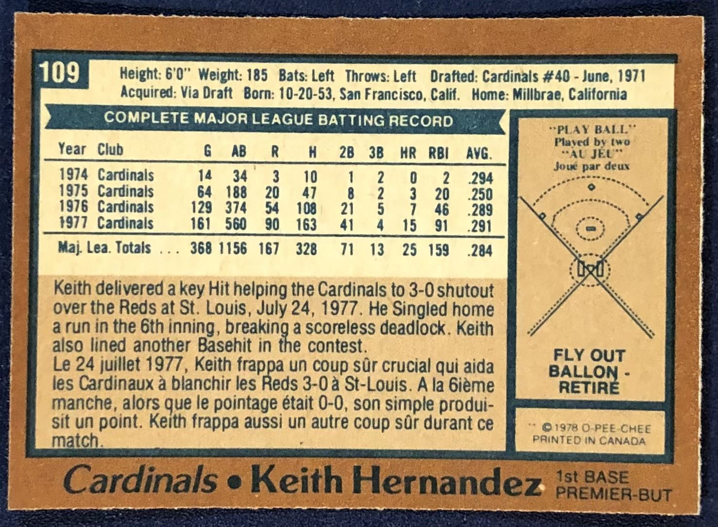 Lot 972 1978 O-PEE-CHEE KEITH HERNANDEZ