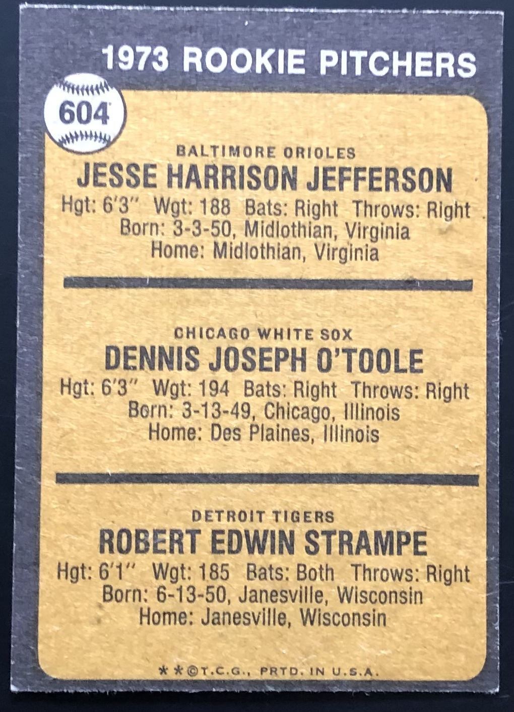 Lot 987 1973 TOPPS HIGH NUMBERS - JESSE JEFFERSON ROOKIE CARD