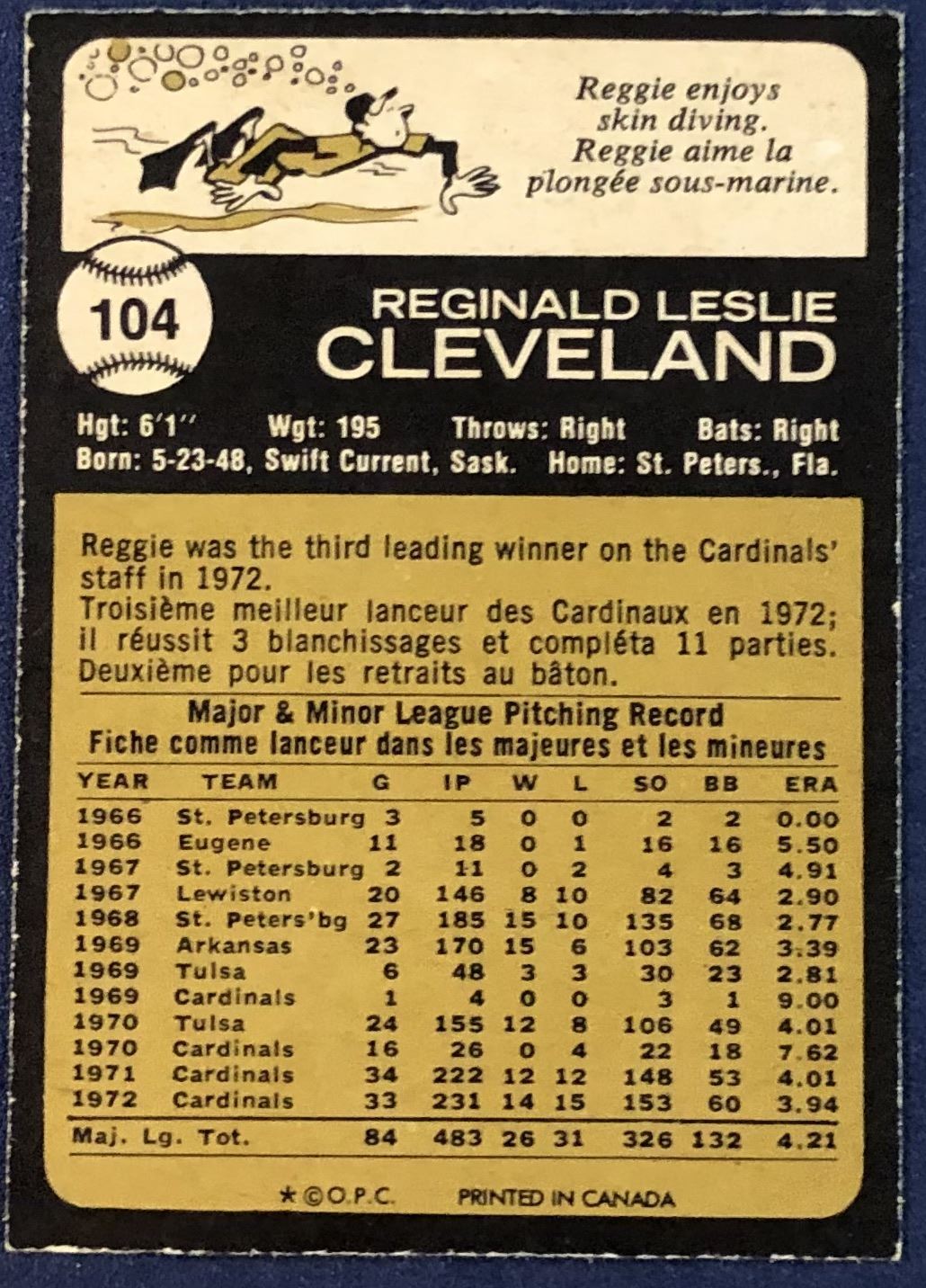 Lot 992 1973 O-PEE-CHEE REGGIE CLEVELAND