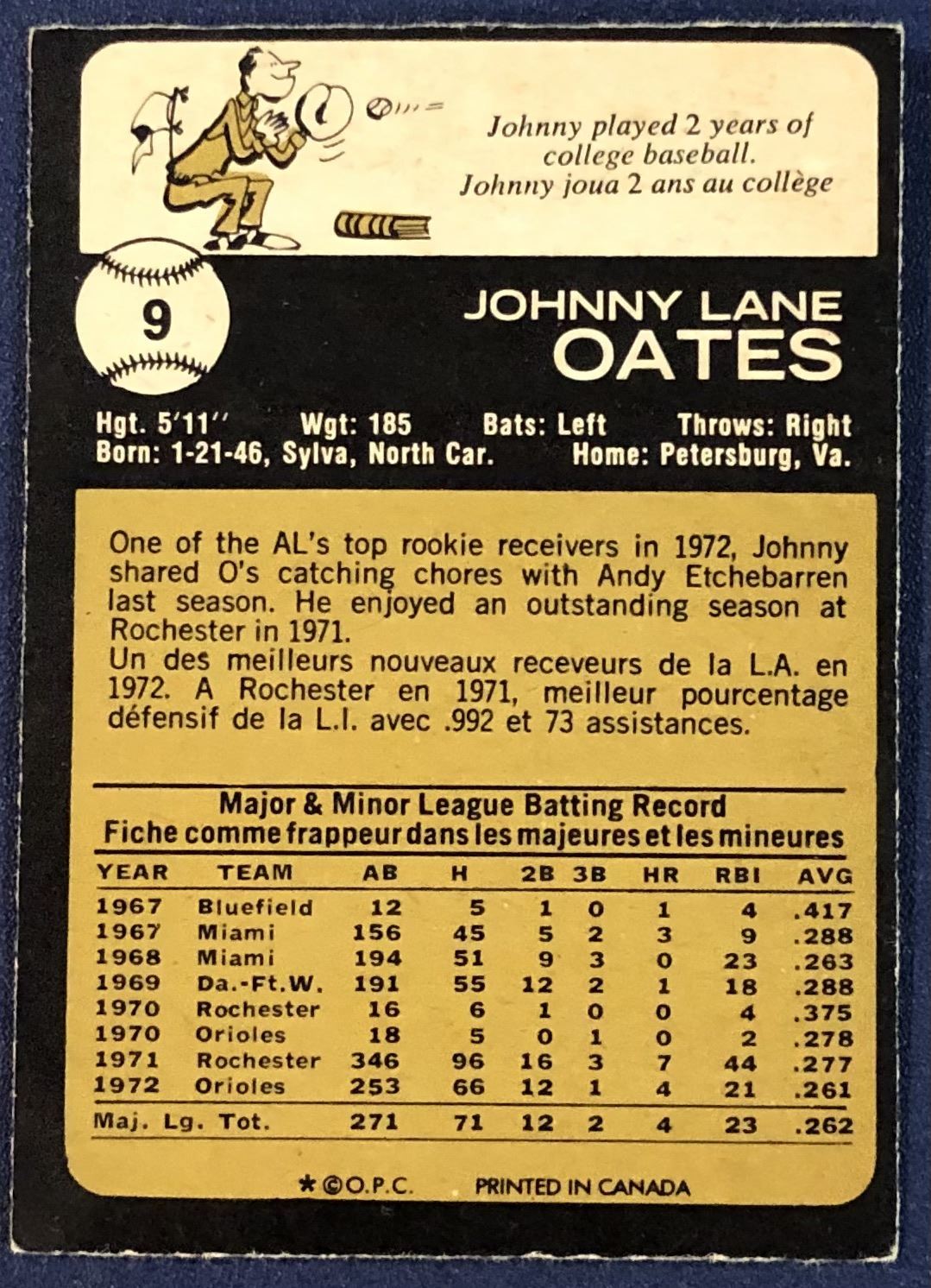 Lot 995 1973 O-PEE-CHEE JOHNNY OATES