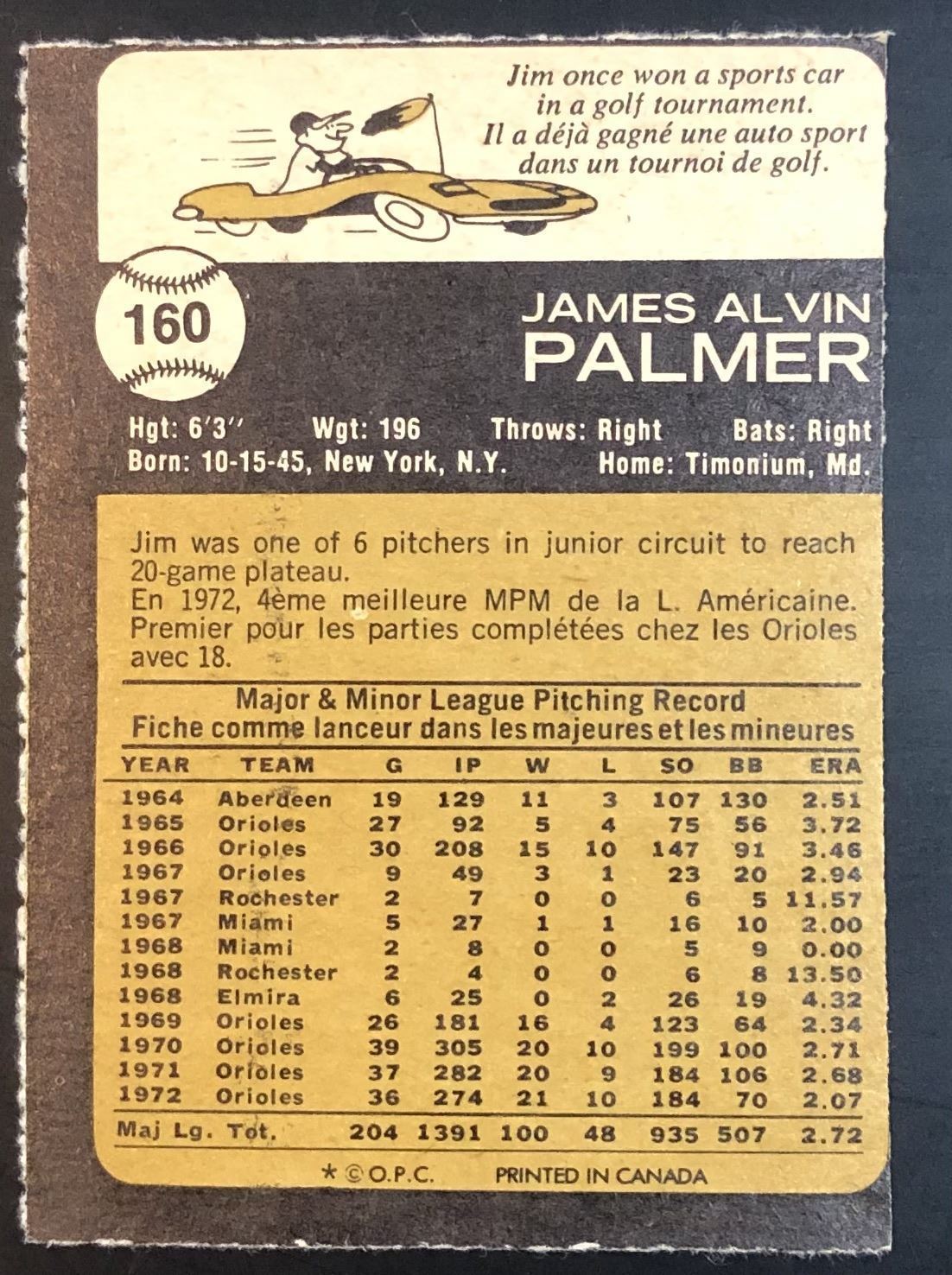 Lot 997 1973 O-PEE-CHEE JIM PALMER (HOF)
